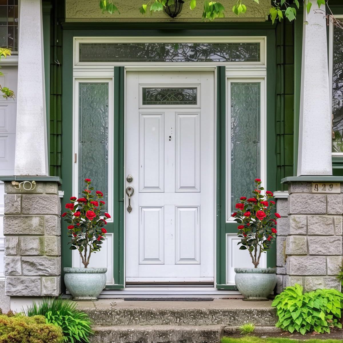 - 2 Premium Quality Construction**: Crafted from high-quality PE material, our artificial camellia tree is odorless, non-allergenic, and resistant to fading and cracking. It maintains its lifelike appearance for years without any special care.