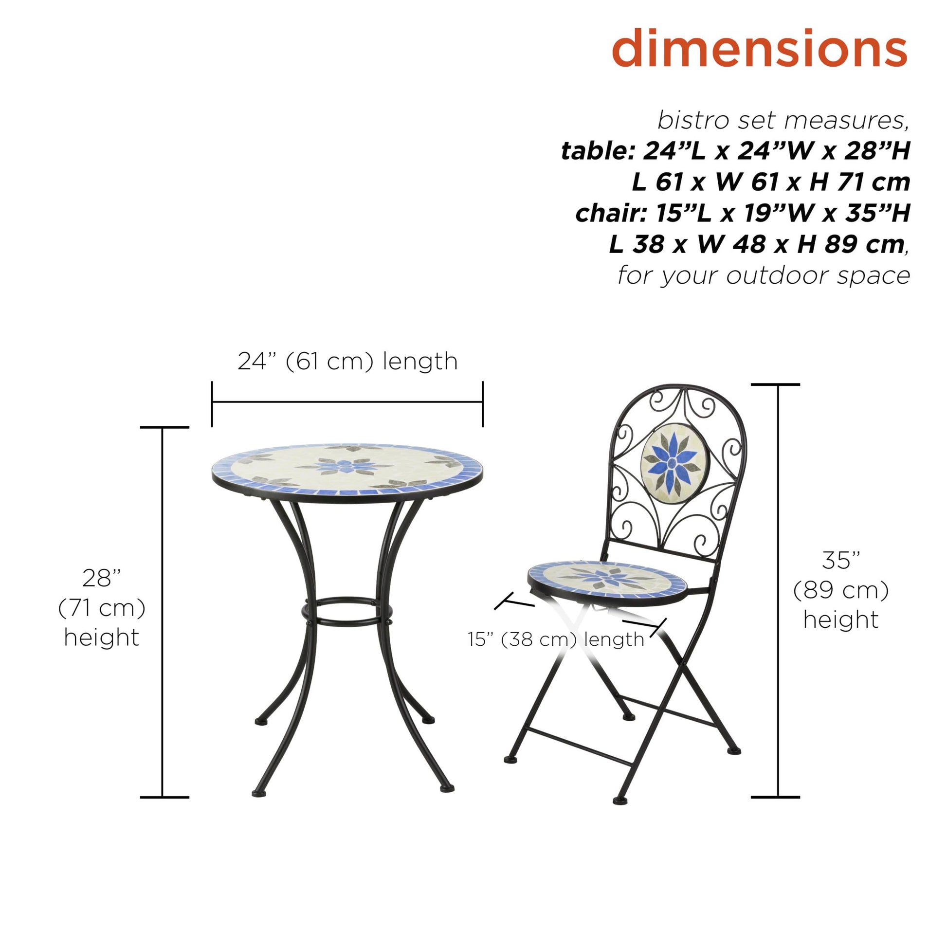 - IDEAL SIZE: Bistro table measures 24" x 24" x 28" and chairs measure 15" x 19" x 35". Includes a one-year manufacturer's warranty from the date of purchase