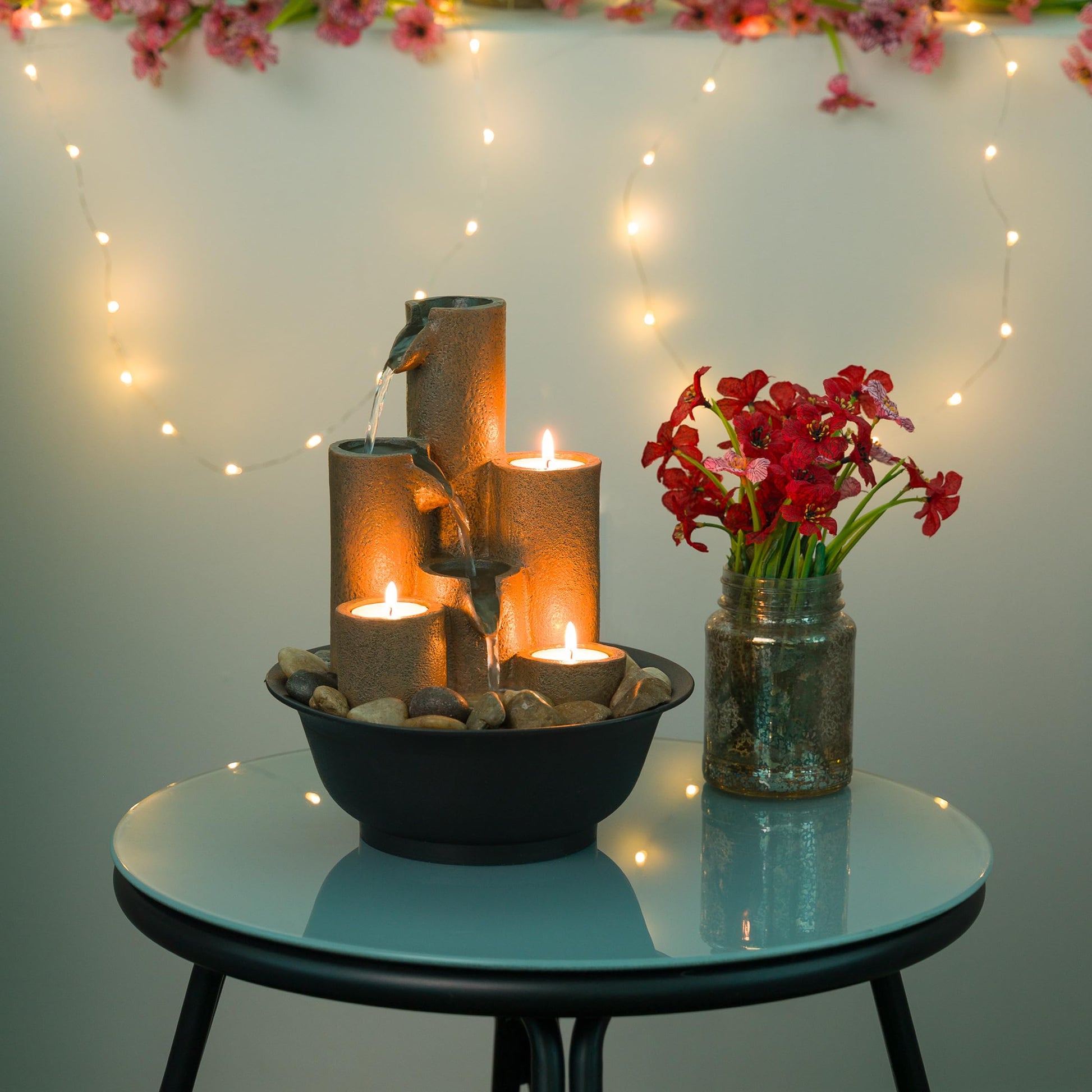 WCT202 Indoor Tabletop Tiered Water Fountain Featuring 3 Candles for Desktop and Table