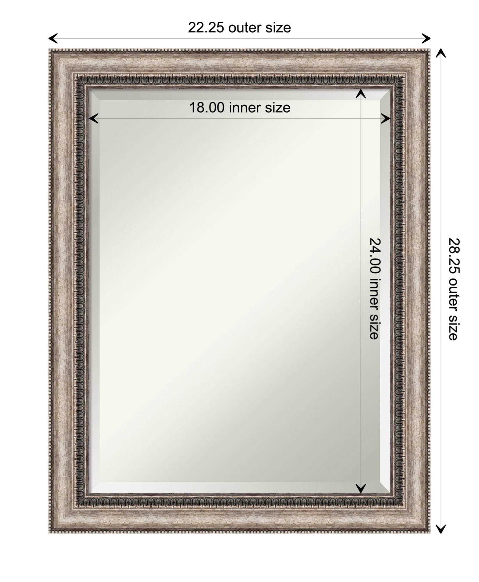 - The overall size of this vanity mirror measures 22.25 x 28.25 inches, including the frame. Its reflective area measures 18.00 x 24.00 inches, which works perfectly over a standard vanity. The mirror itself has a 1-inch bevel.