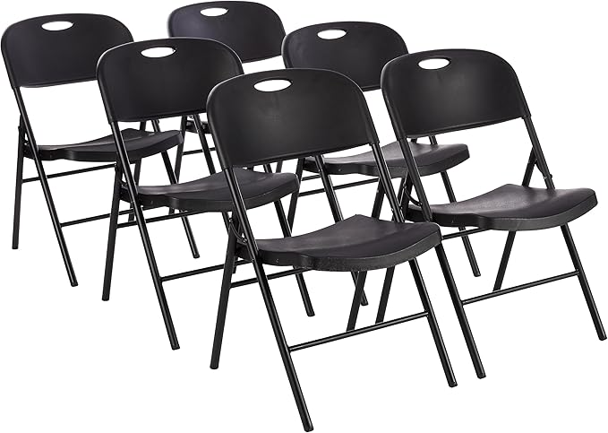 Foldable Portable Sturdy Folding Plastic Chair, 350-Pound Capacity, Black, 2-Pack