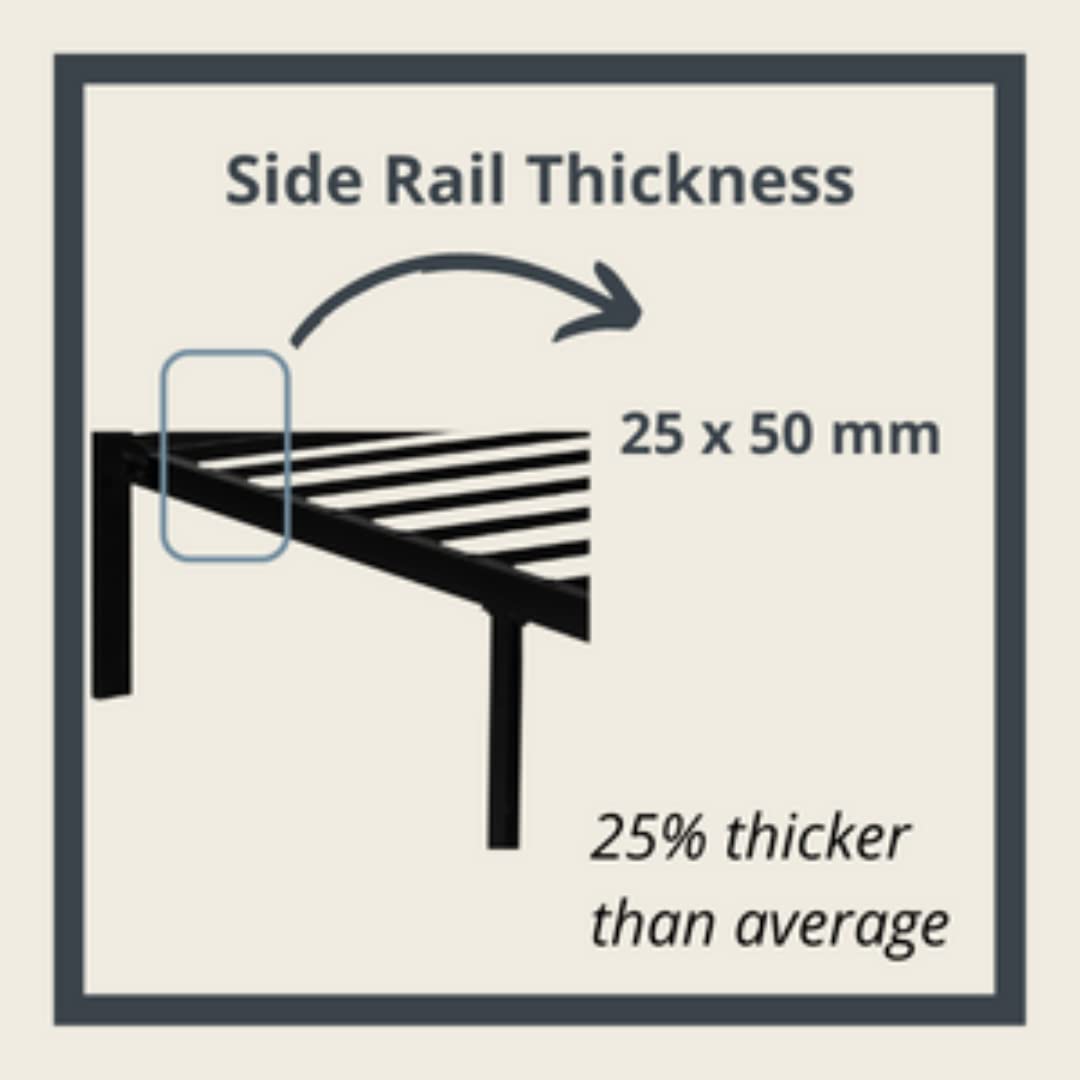 - MORE ROOM FOR YOUR BEDROOM: Create more breathable space in your scandinavian designer bedroom with this rustic iron cast frame, providing 11 inches of under-bed clearance to floor for extra storage. Reduce clutter and increase organization with ample space for bedding, books, dog or cat bed, stow away goods and essentials, minimizing the need for repetitive tidying. It carves out more luxury living space in your home. Our durable frame offers sturdy support while its sleek design adds a touch of modern elegance to any space. Say goodbye to cluttered rooms and hello to a more spacious and organized pretty environment.