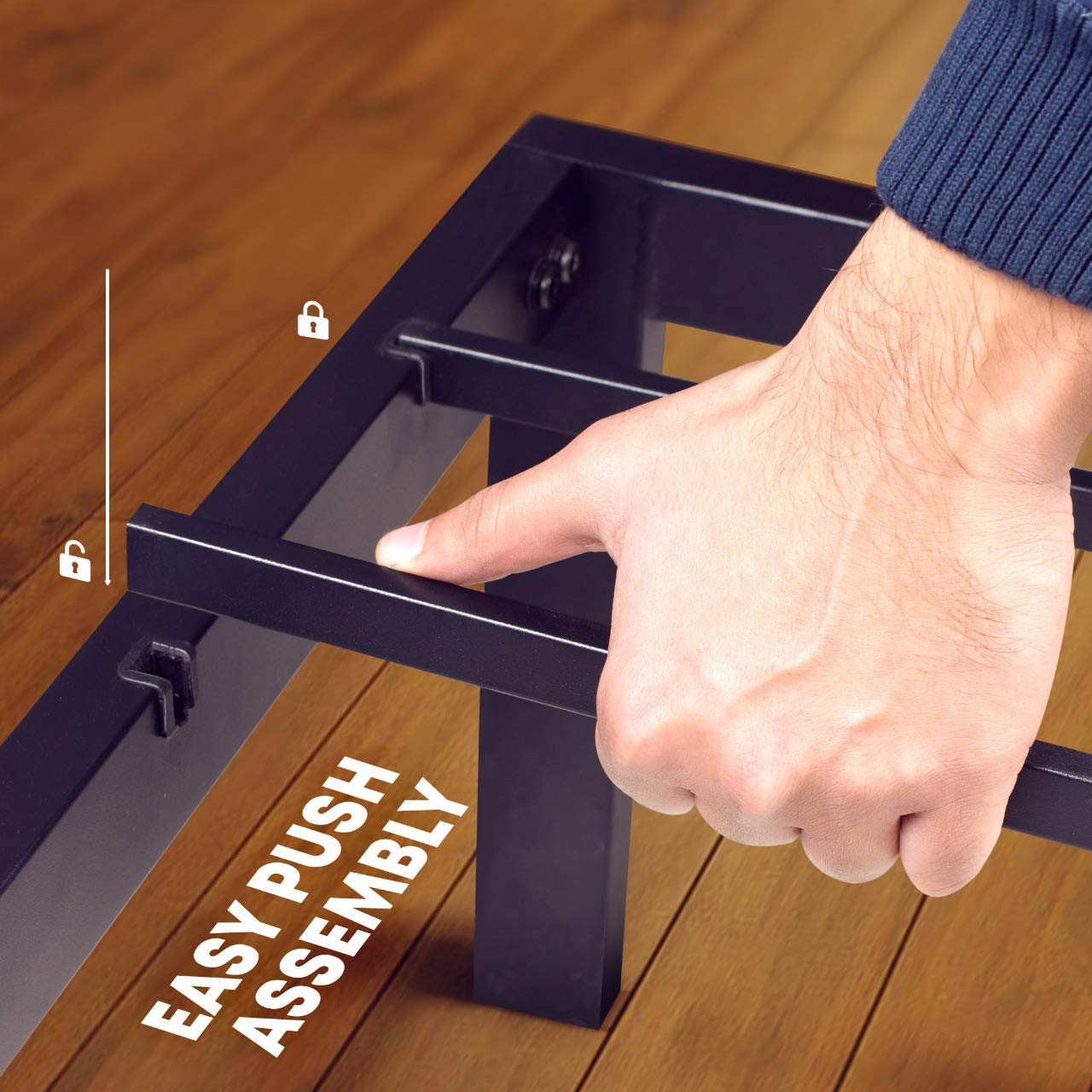 - CRAFTED WITH PRECISION: Country vibe 13 inch high elevated platform boast premium quality construction to ensure lasting durability. With a heavy-duty capacity of 1000 pounds, sturdy rail slats, 9 solid legs and no need for a box spring or a trundle, these mid century fancy frames offer reliable support for your mattress. Whether it's a twin, full, queen, king or california king frames come in versatile sizes to fit your needs. Say goodbye to squeaky frames with our minimalistic western design that blends seamlessly with any decor style, from modern to rustic. It upgrades your bedroom with sleek, sturdy, and stylish theme.
