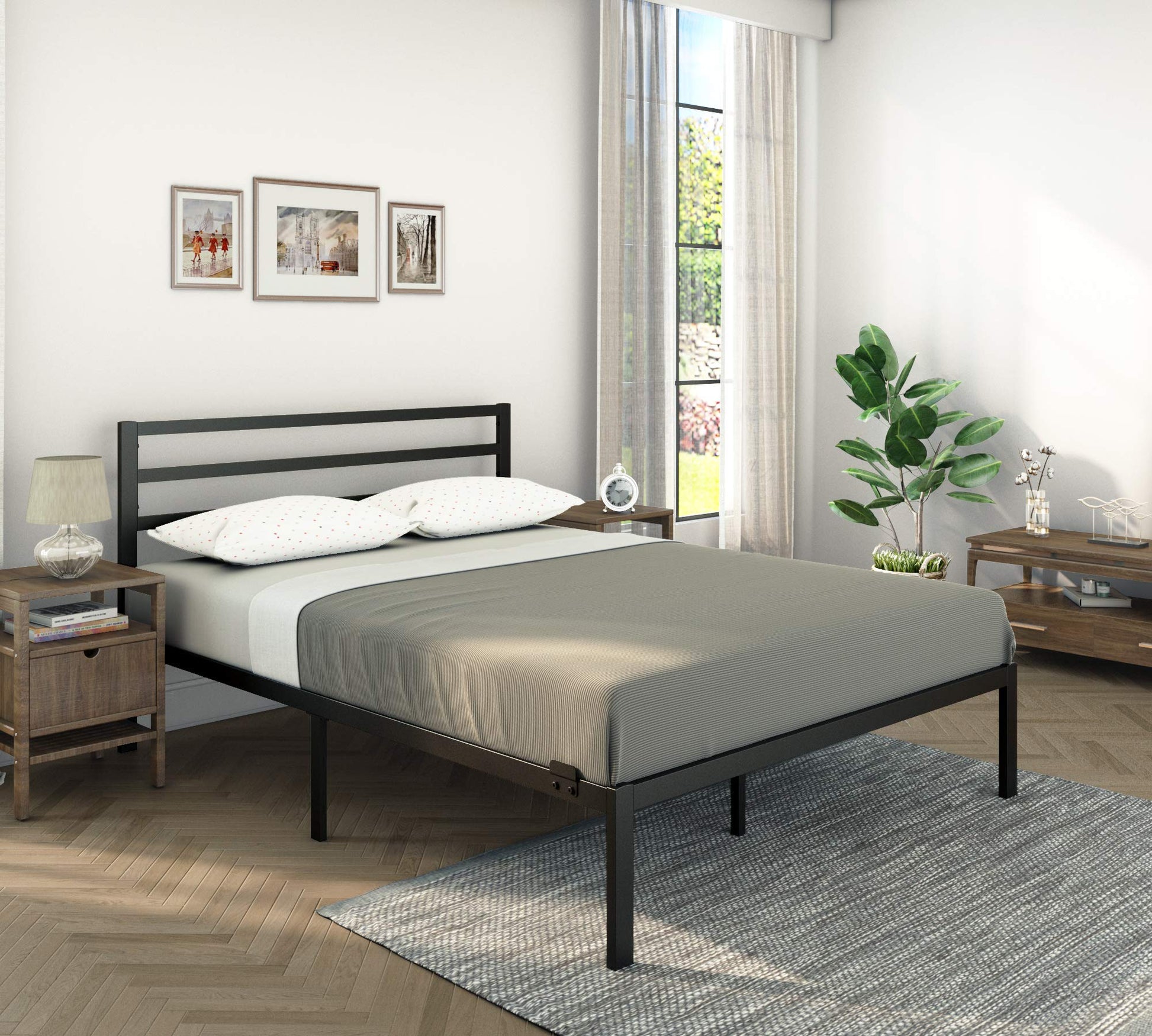 - CONTEMPORARY IDEA: Sustainable, simple, basic, modular-built bed frame with a restoration theme, ideal for quiet sleep or cozy movie nights. Everything you need comes in one box with all neccary hardware required, ready to be a part of your beautiful home. Headboard Pipe is thicker than average frames so it feels unique and premium. It is compatiable with US & Canada mattress sizes and all types of mattresses : Gel, Memory Foam Hybrid, Latex, Organic, Regular Bonnell Pocket Spring. It lays flat all day and night long.
