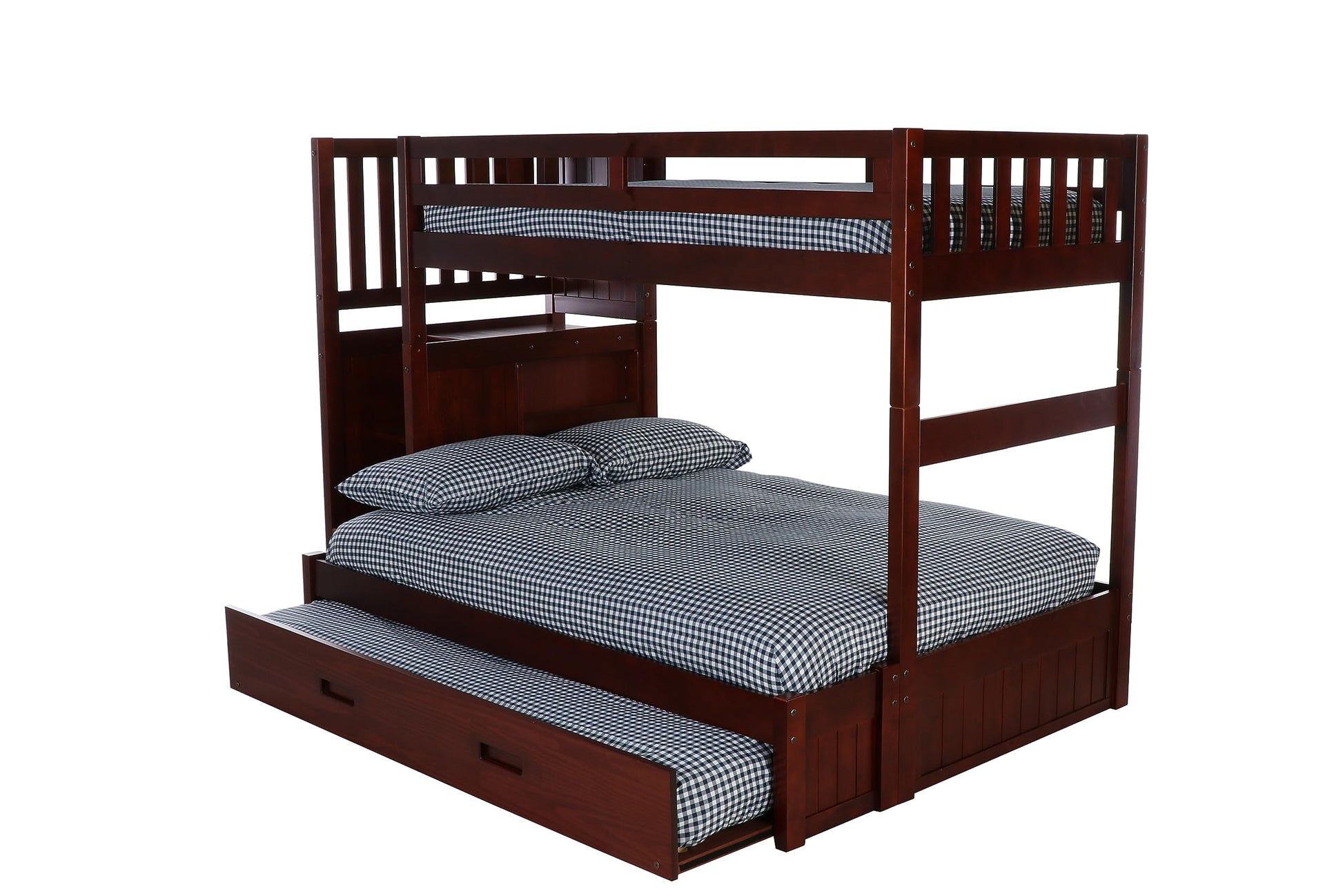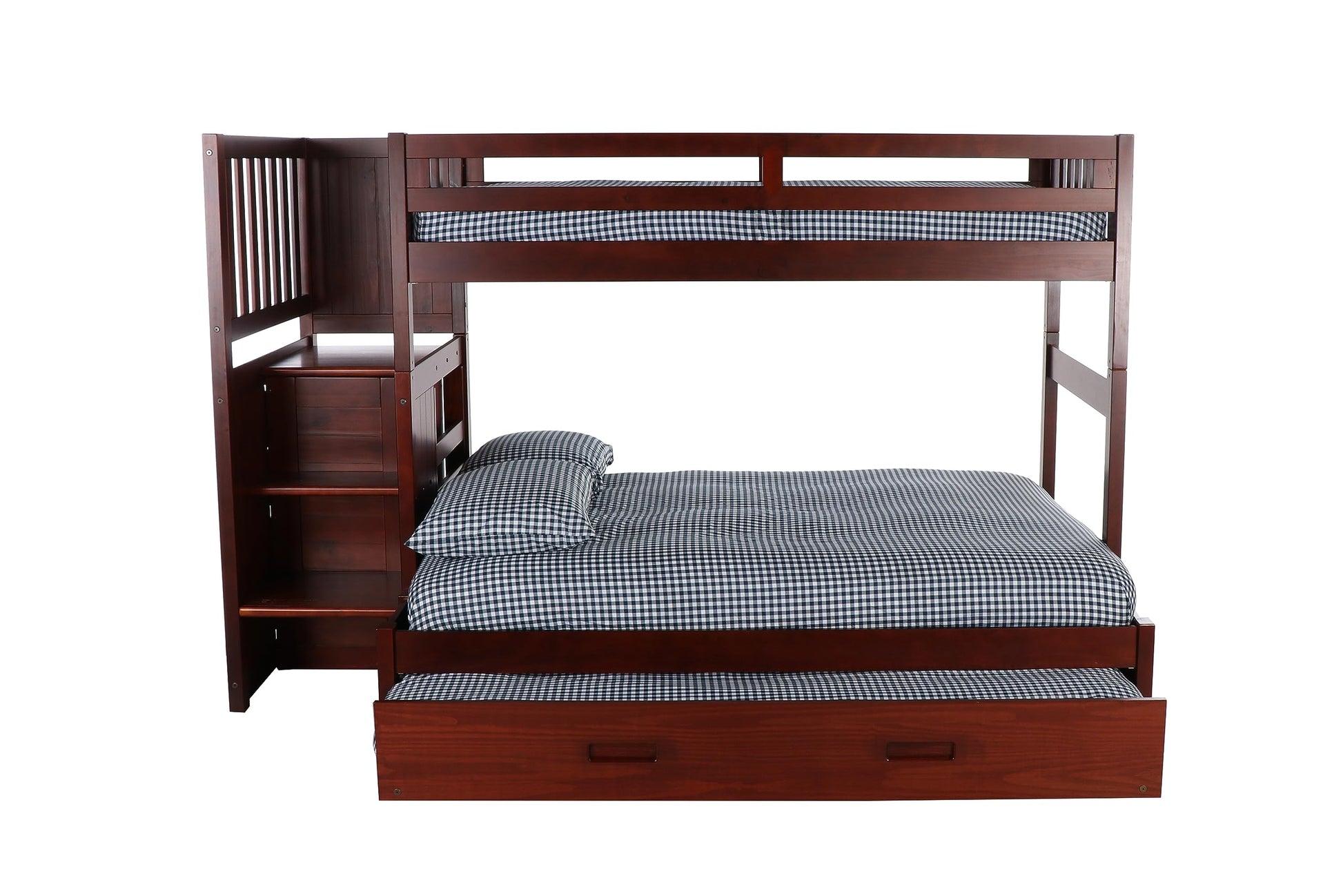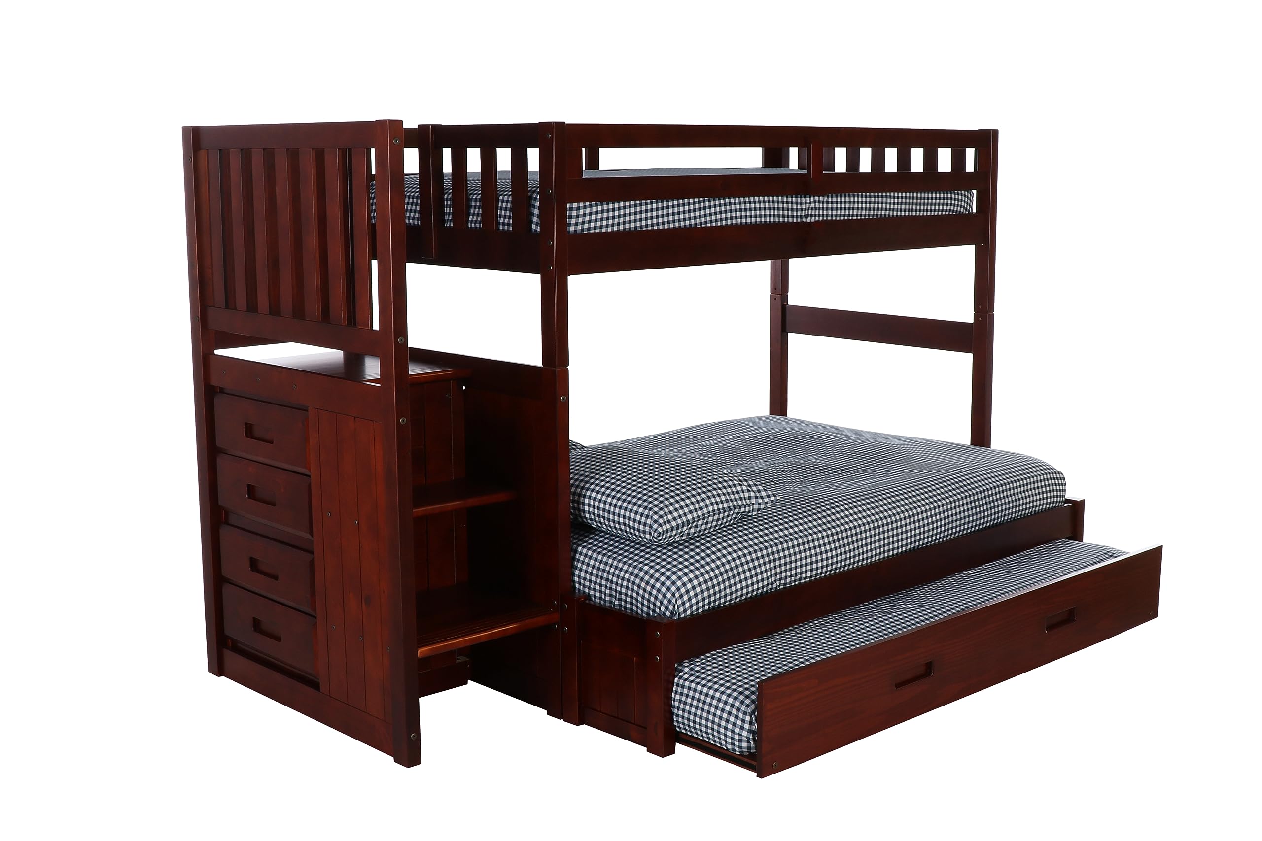 Mission Staircase Four Drawer Chest and Roll Out Twin Trundle Bed in Rich Merlot
