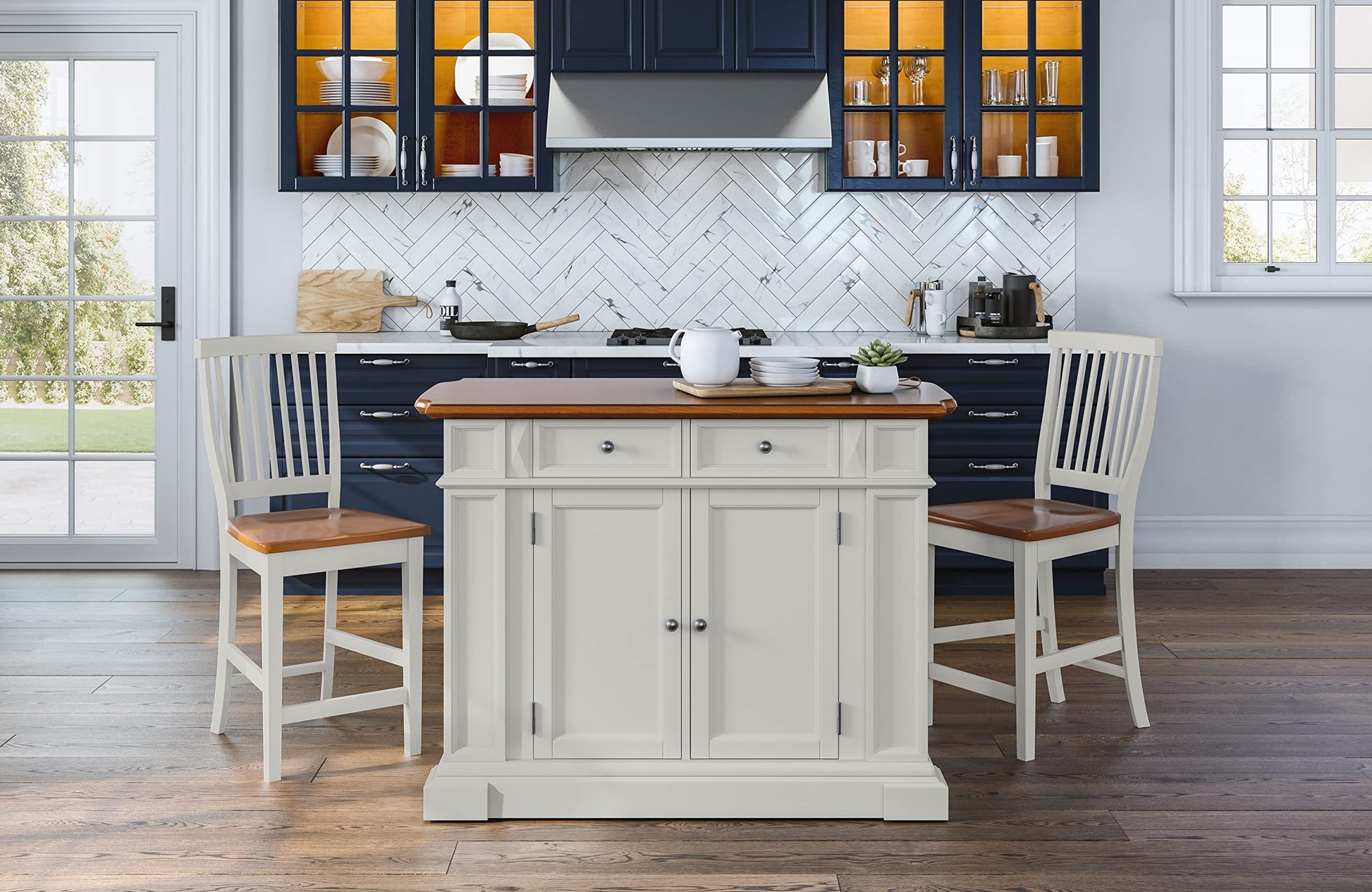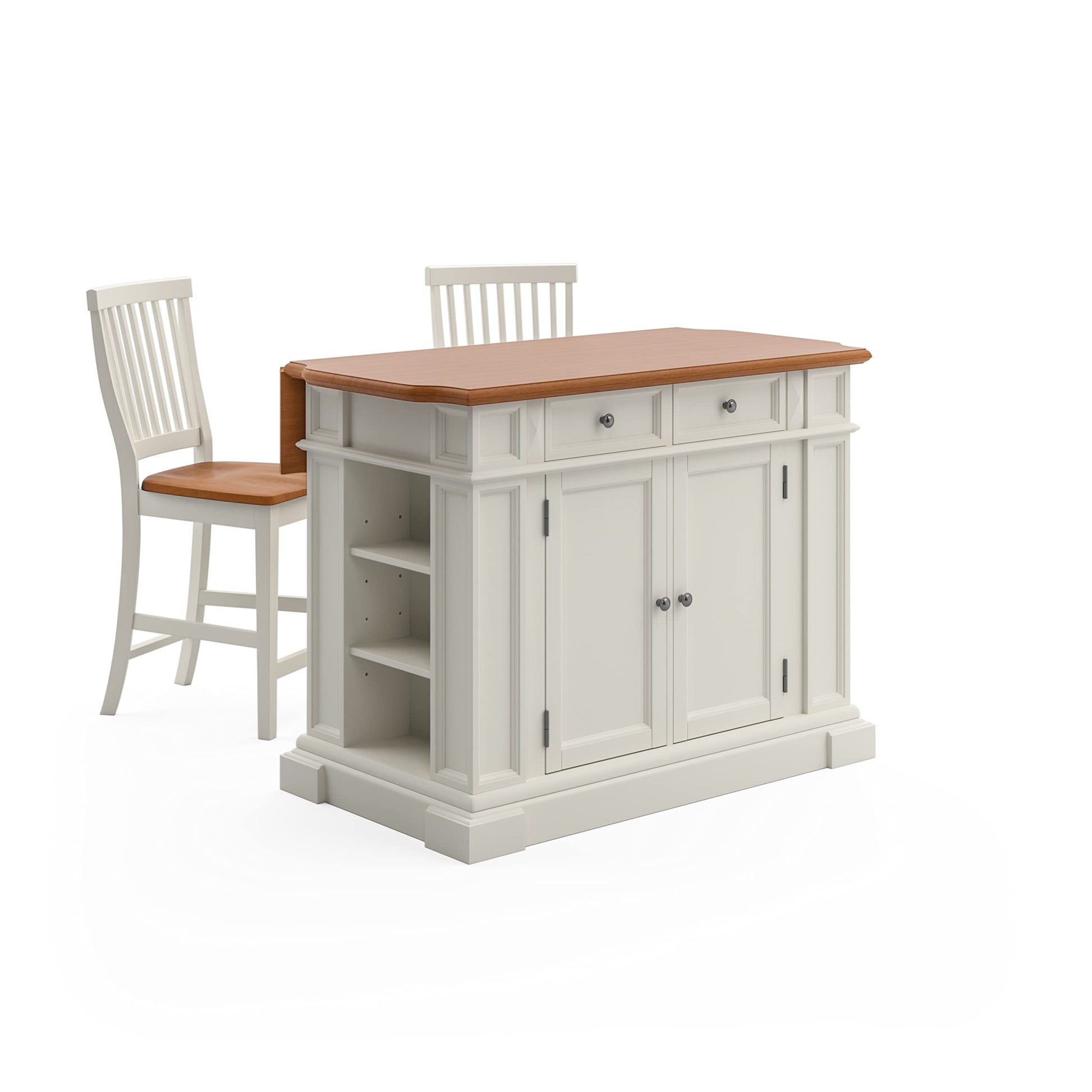 Americana White and Distressed Oak Kitchen Island and Stools by Home Styles