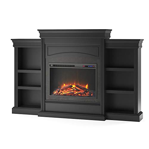 - The 3 tiered Fireplace features 2 bookcases with 3 shelves each on either side of the fireplace insert to display your book collection and memorabilia. The 26” fireplace insert features a realistic flame effect that can be used with or without heat. Use the remote control or touch panel to control the different flame settings and heat settings to keep your room at the right temperature. Insert heats a room up to 400 sq. ft. and plugs into a standard 120V outlet