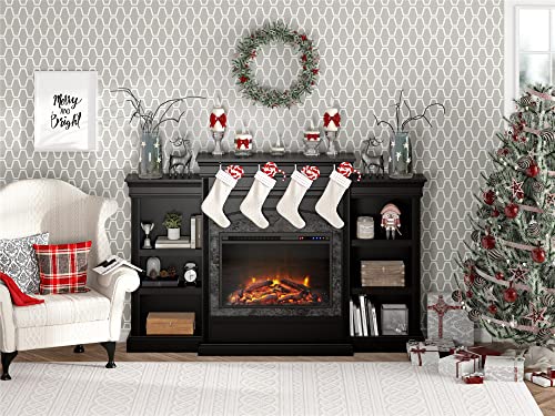 - The Mantel Fireplace ships flat to your door and 2 adults are recommended to assemble and move. Each shelf on the bookcases will hold up to 15 lbs. This Mantel Fireplace is not designed to support a TV. Once assembled, the Fireplace measures to be 44.7” H x 69.3” W x 12.6” D
