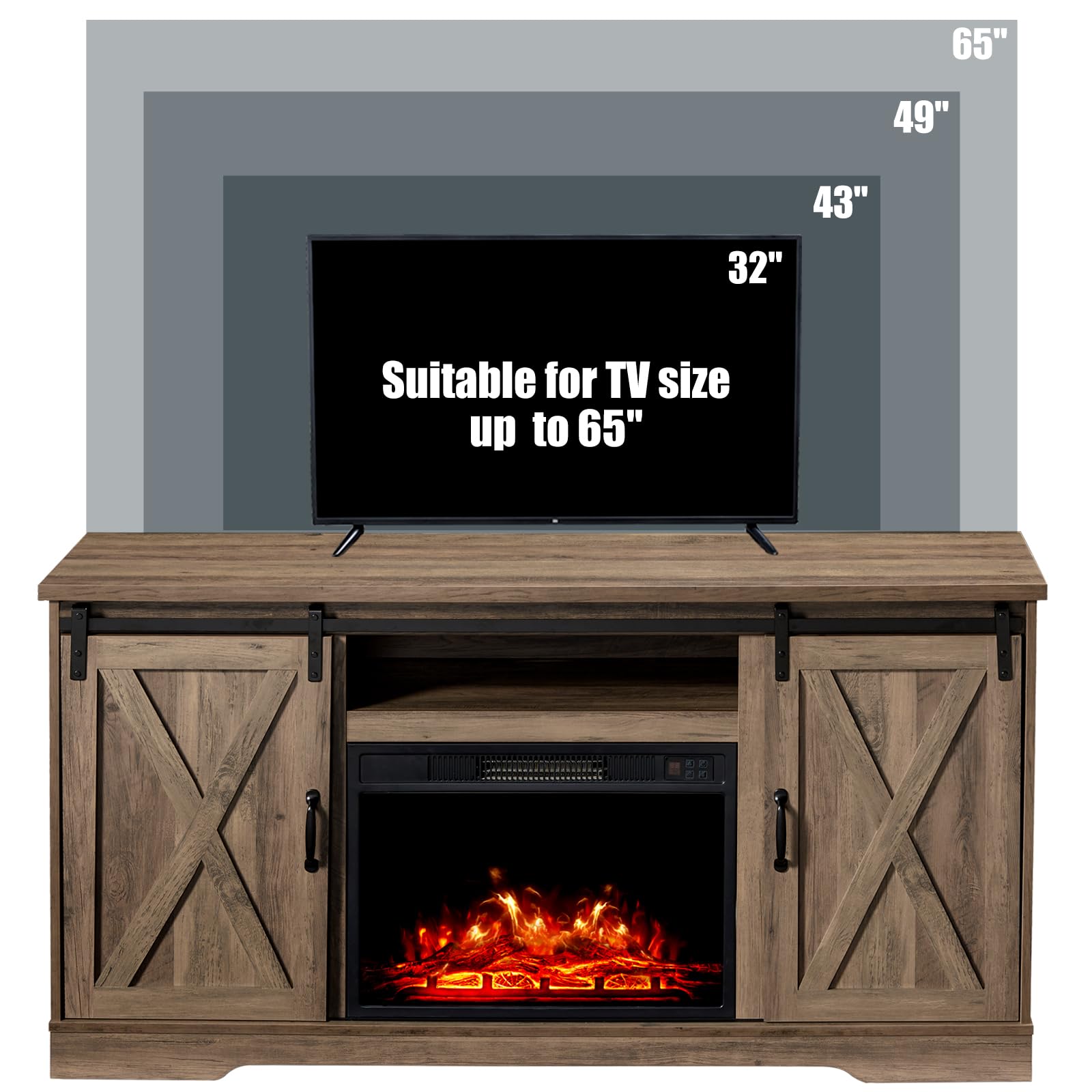 - Farmhouse23-inch electric fireplace insert gives a realistic wood-burning flame, 3 flame settings, and the ability to turn the heat off but keep your flames on. style with premium wood texture equipped with an X design for the perfect blend of style and function and increase the aesthetic of your living room.
