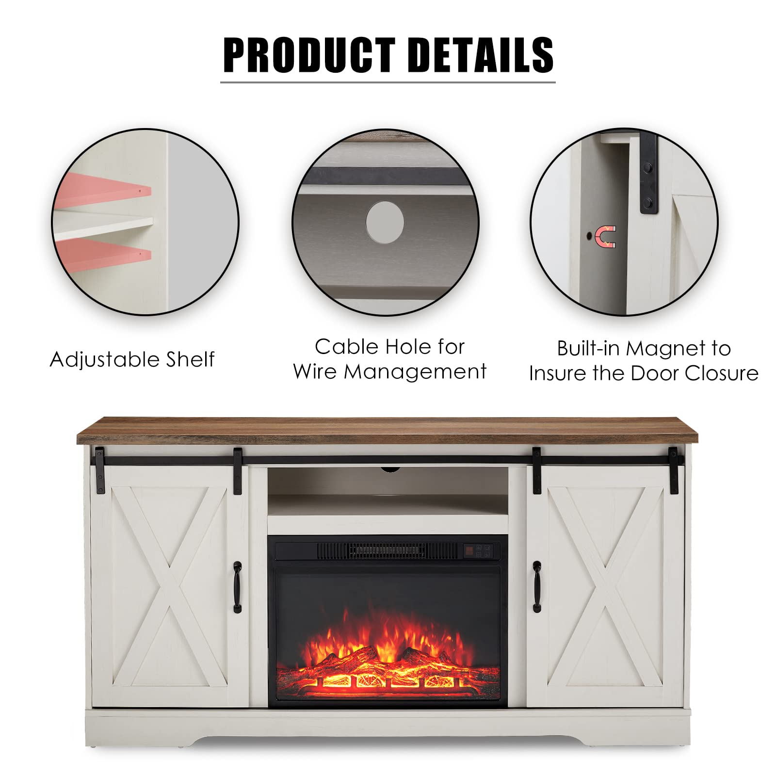 5-Piece Farmhouse Table Set includes Fireplace TV Stand, Coffee Table& Two End Tables
