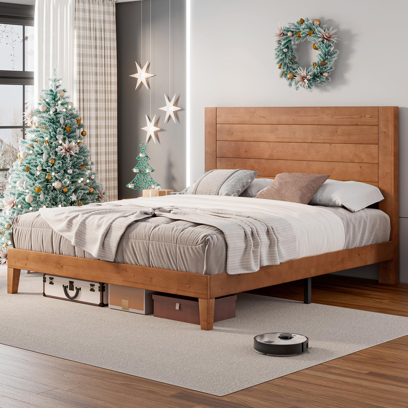 - With 48.6'' headboard, wooden platform bed frame provides superior support and comfort. Whether you're reading a book or watching TV in bed, you can lean back and relax with ease.