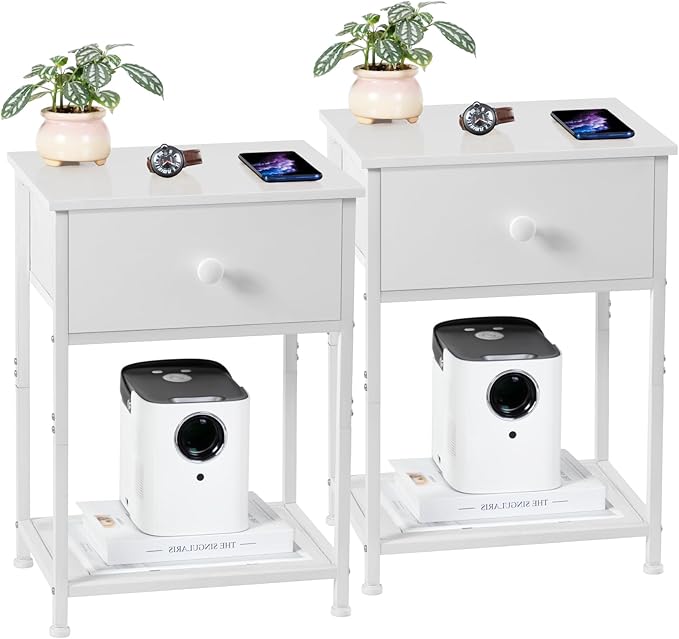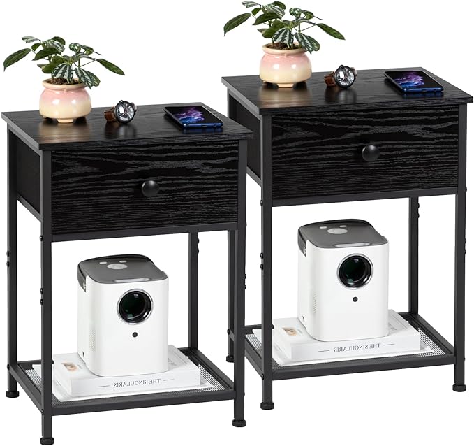 - The nightstands bedroom set of 2 with a drawer and open shelf. You can store a variety of items and stash private or unattractive items out of sight. The shelf made of iron mesh features ample storage space, even for larger items such as, magazine or laptop, and other necessaries stuffs. You could also add a basket for more private storage