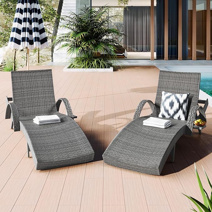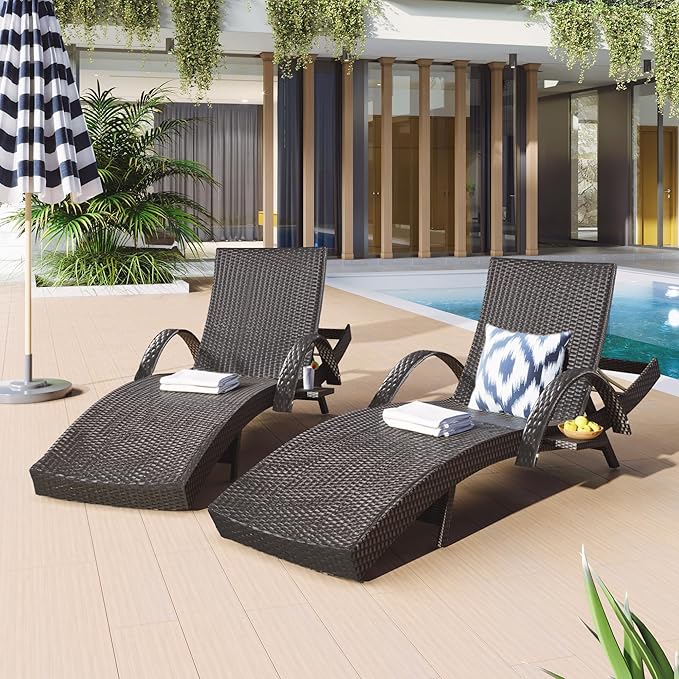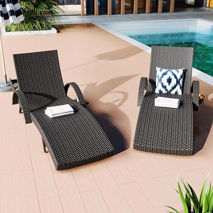 - Widely Uses: Combines style with comfort, this rattan rattan chaise lounge set of 2 will make a stunning addition to patio, deck, balcony, poolside, sunroom, lawn, garden, backyard and more. Good for outside relaxing,reading, taking a nap or sunbathing.