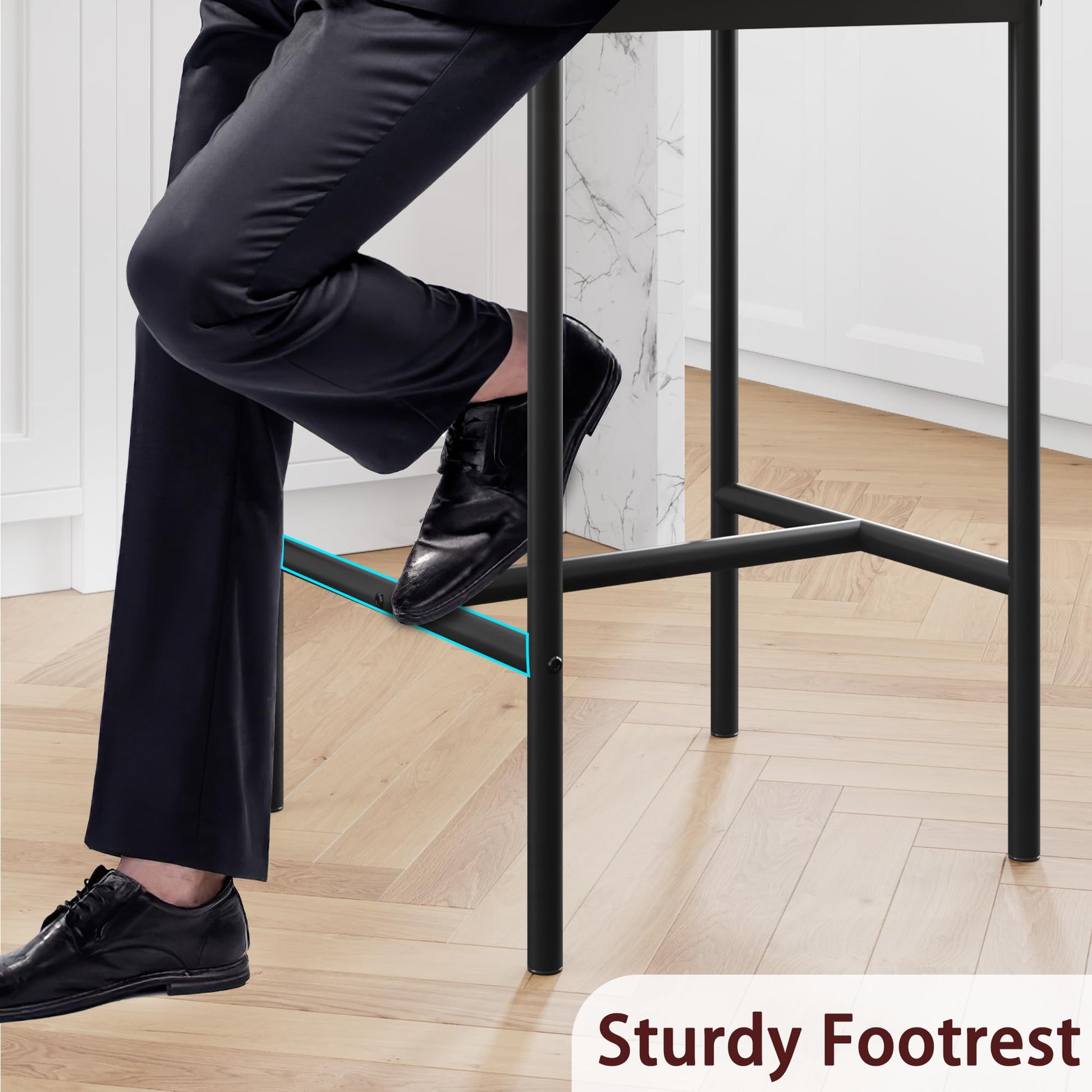 Bar Stools Set of 2, Upholstered Bar Chairs with Back, 25.5 Inches Kitchen Bar Stools