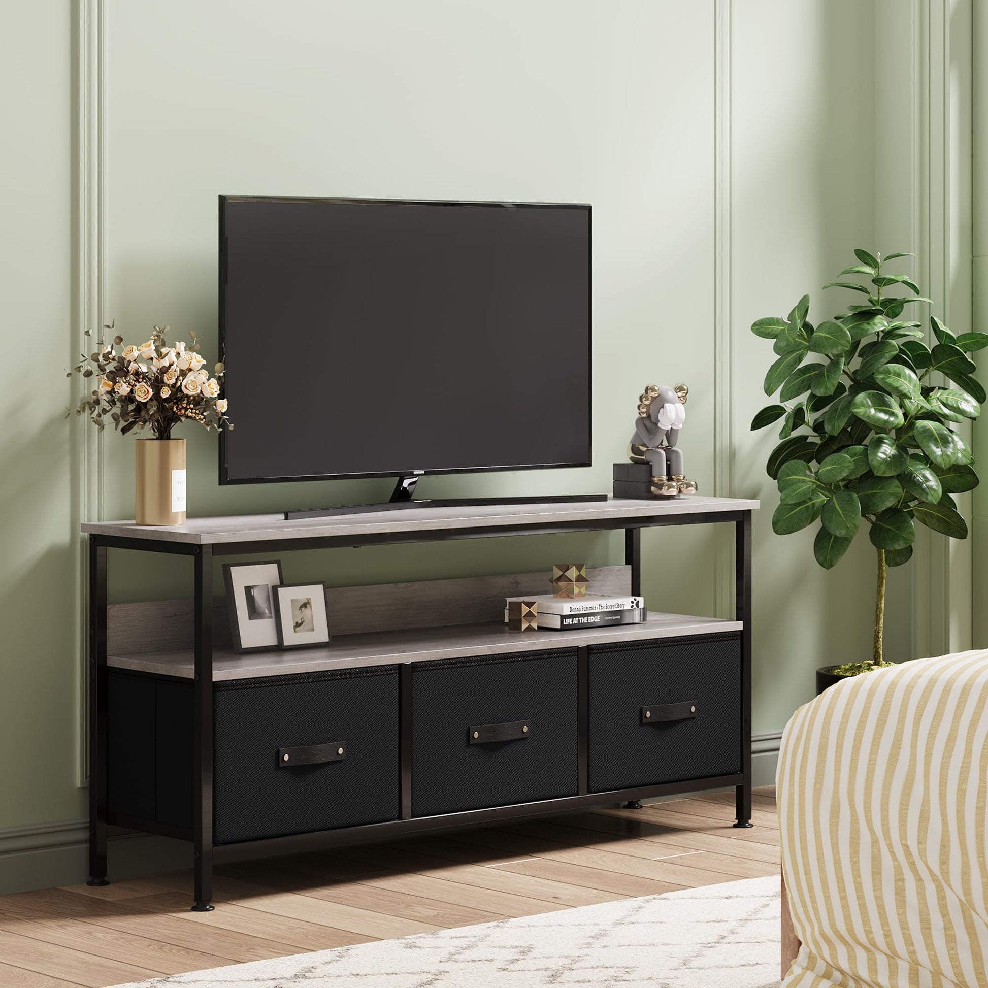 - DRESSER TV STAND: The TV stand and drawer are a perfect combination, offering both functionality and style. This 55 inch TV stand features a grey wood grain finish, which adds rustic charm to your living room or bedroom. With its 3 foldable fabric drawers, the dresser TV stand provides ample storage space while also protecting your privacy. Simple yet stylish design allows it to effortlessly blend in with any home style and decor.