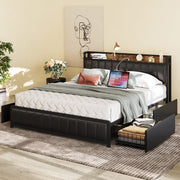 Queen Bed Frame with Storage Drawers Headboard & Footboard, Upholstered Platform