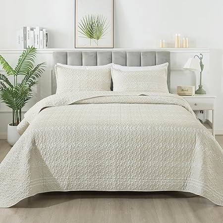 - With the decorated geometric pattern outside, you can perfectly use it as a bedspread to keep your comforter clean if you like to sleep with your pet(s) or to keep warm in colder season; Lightweight and breathable, you can use it as a quilted coverlet if you have night sweats or turn down the comforter in summer or air-conditioned room.