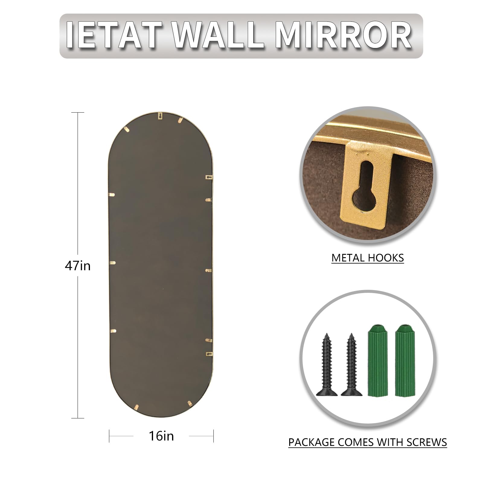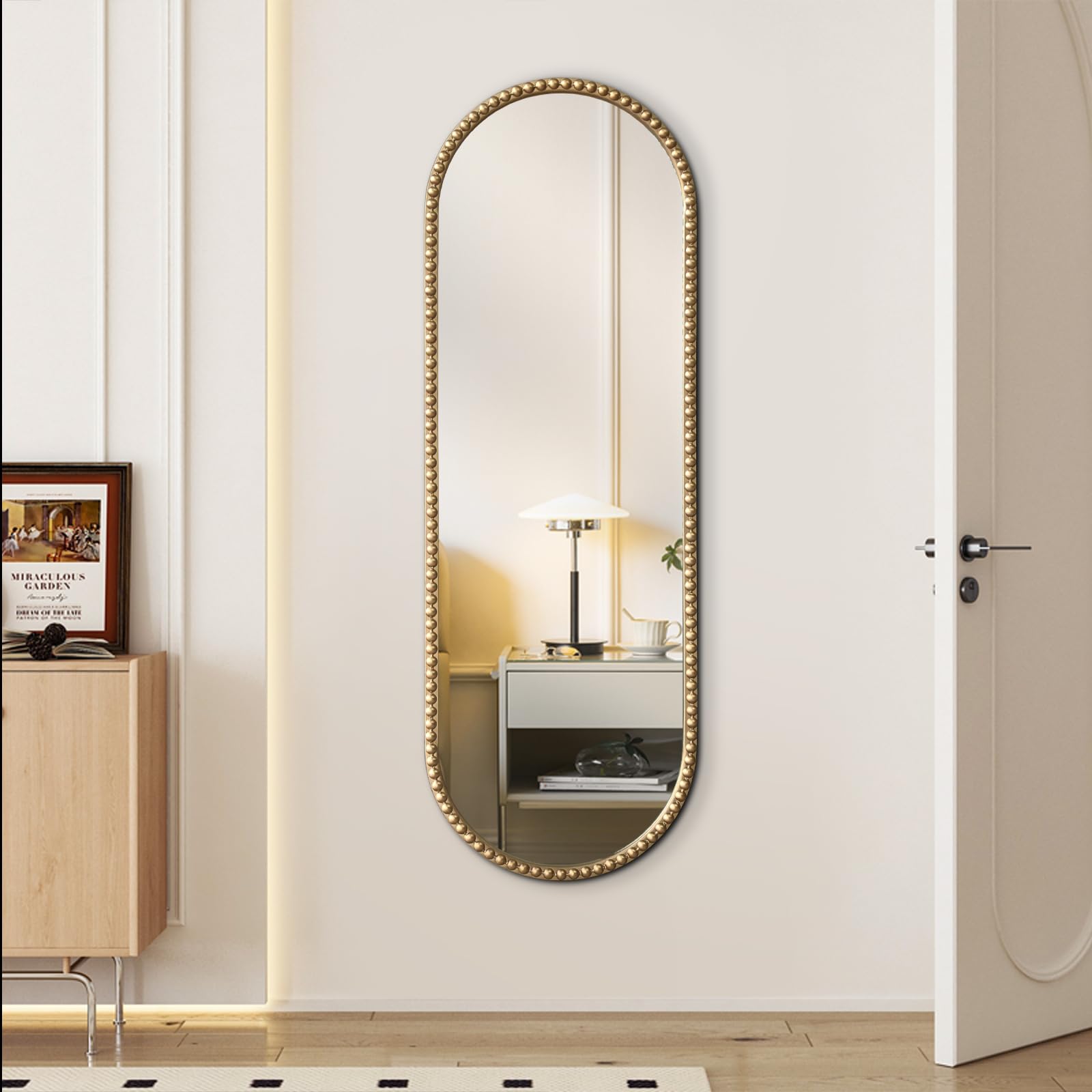Antique Gold Oval Full Length Mirror - Baroque Beaded Wall Mirror 47"x16"