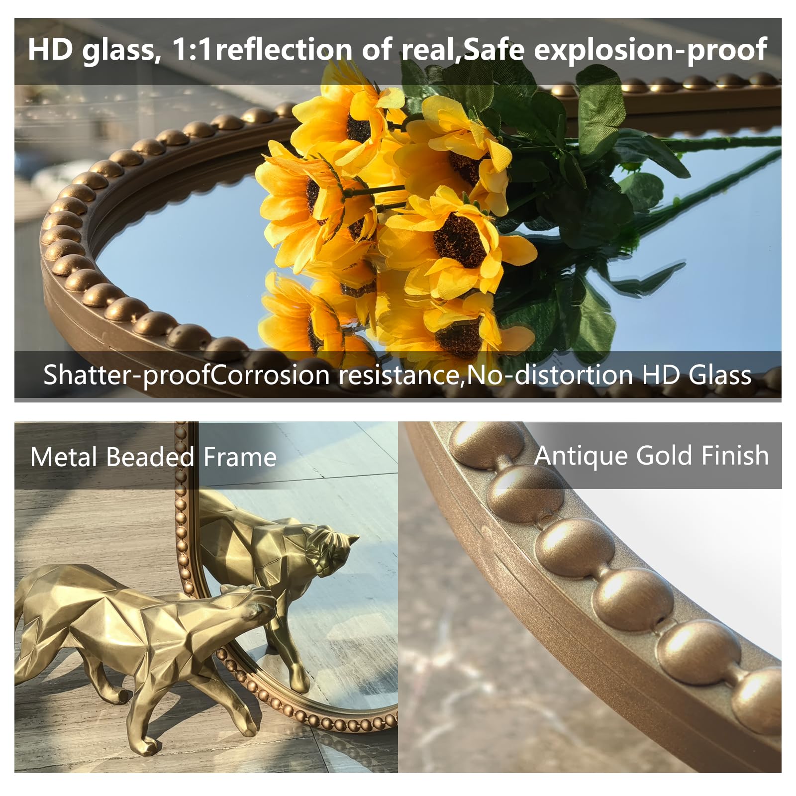 Transform your space with this stunning antique gold oval mirror, featuring intricate baroque beaded detailing and a luxurious metal frame. Perfect for bedrooms, entryways, or dressing areas, this full-body mirror combines timeless elegance with functional design.