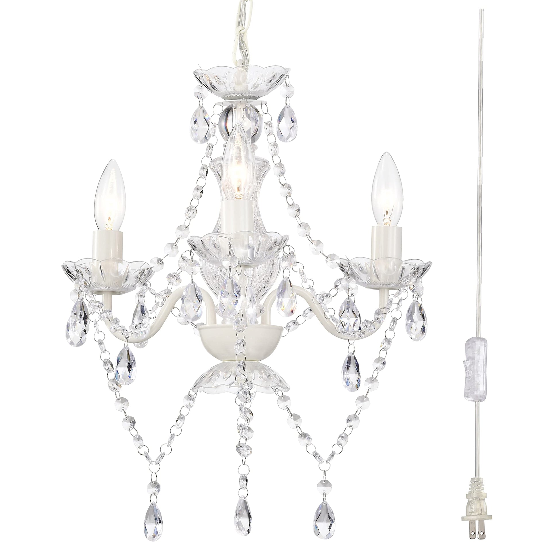 Small Acrylic Crystal Chandelier, Plug in Chandelier Easy to Install,White Chandelier 3