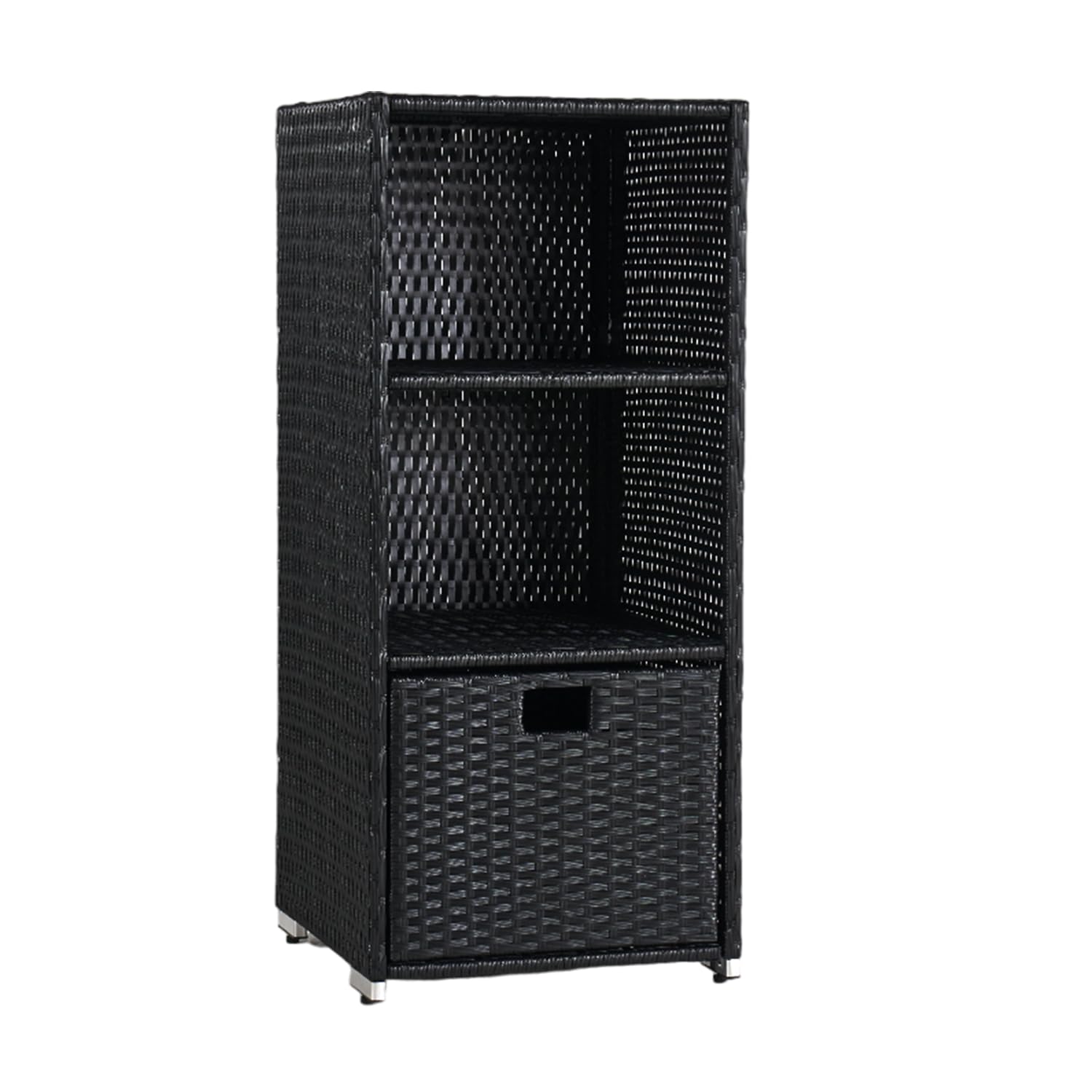 - This pool towel rack outdoor is designed with 2-layer open cabinets and 1 bottom drawer, providing ample storage space to display your swimming pool accessories like pool towel, sunscreen, goggles and offering much convenience for user when they are bathing. Besides, the tabletop is ideal to place your drinks, snacks or others, keeping your space organized and tidy.