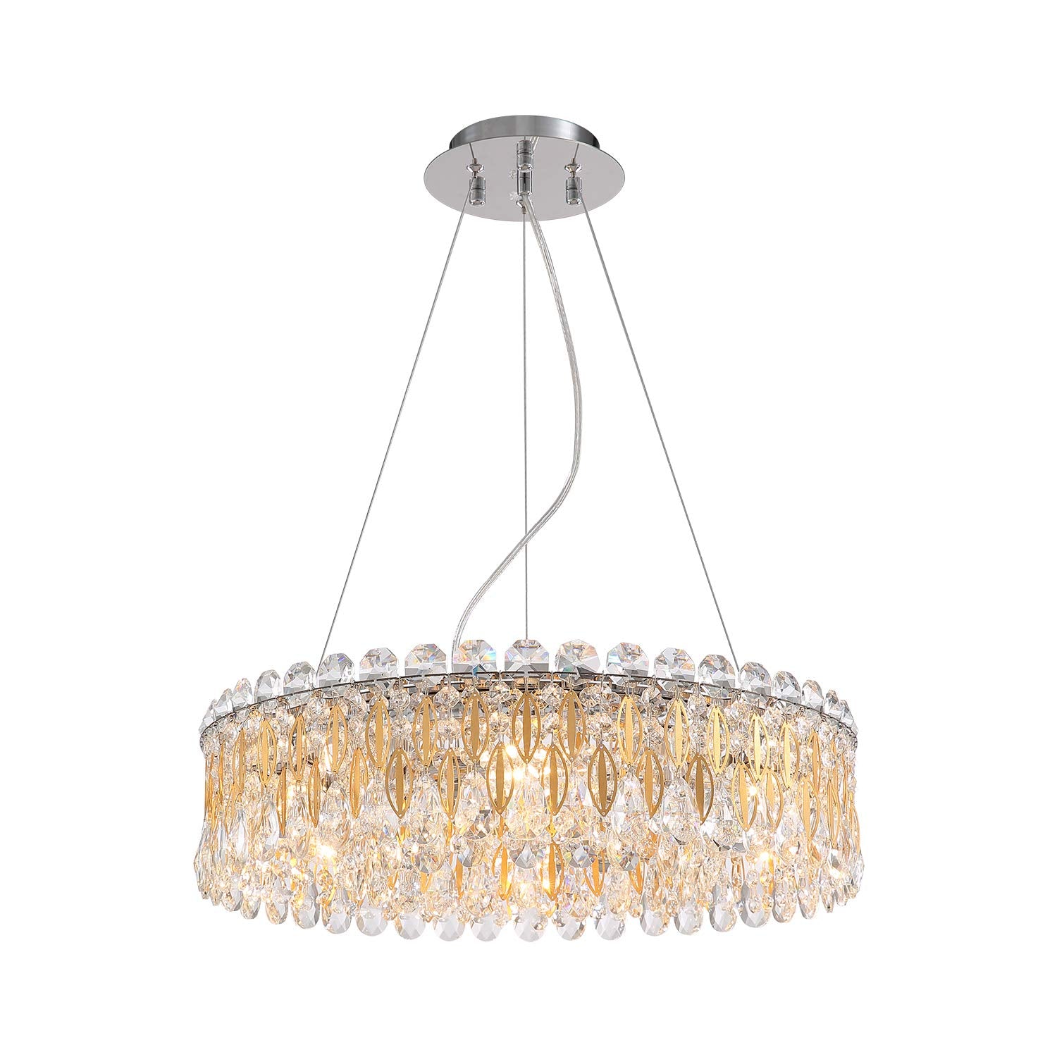 - K9 clear crystals shine down in a rich array of twinkling light. Add some elegance to your home by hanging this gold pendant light.