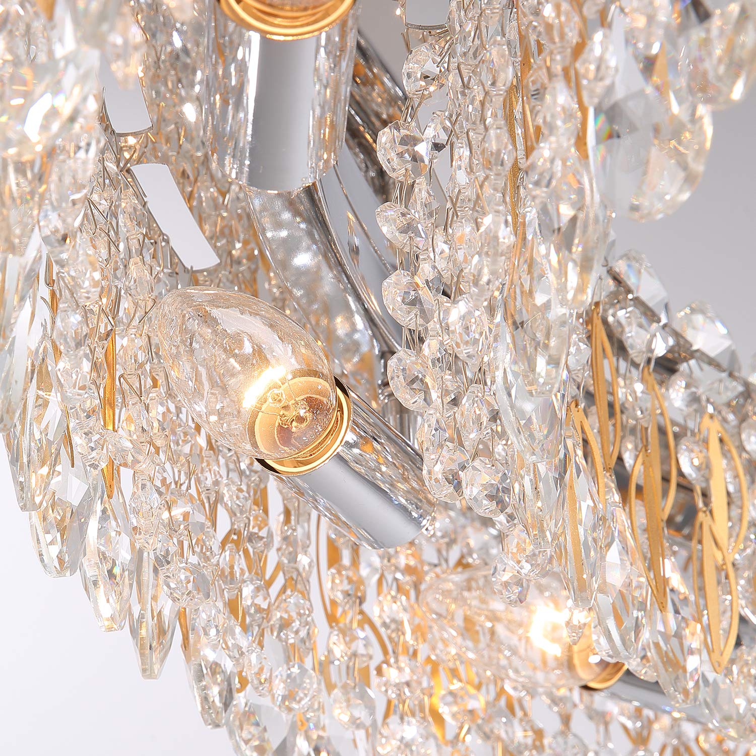 - [High Quality] This raindrop chandelier made of stainless steel canopy, anti-oxidation and never get rust. First class K9 crystal which has glass touch and uneasy to break. W20”(50 cm) x H5.5”(14 cm), adjustable wire length 60”(150 cm).
