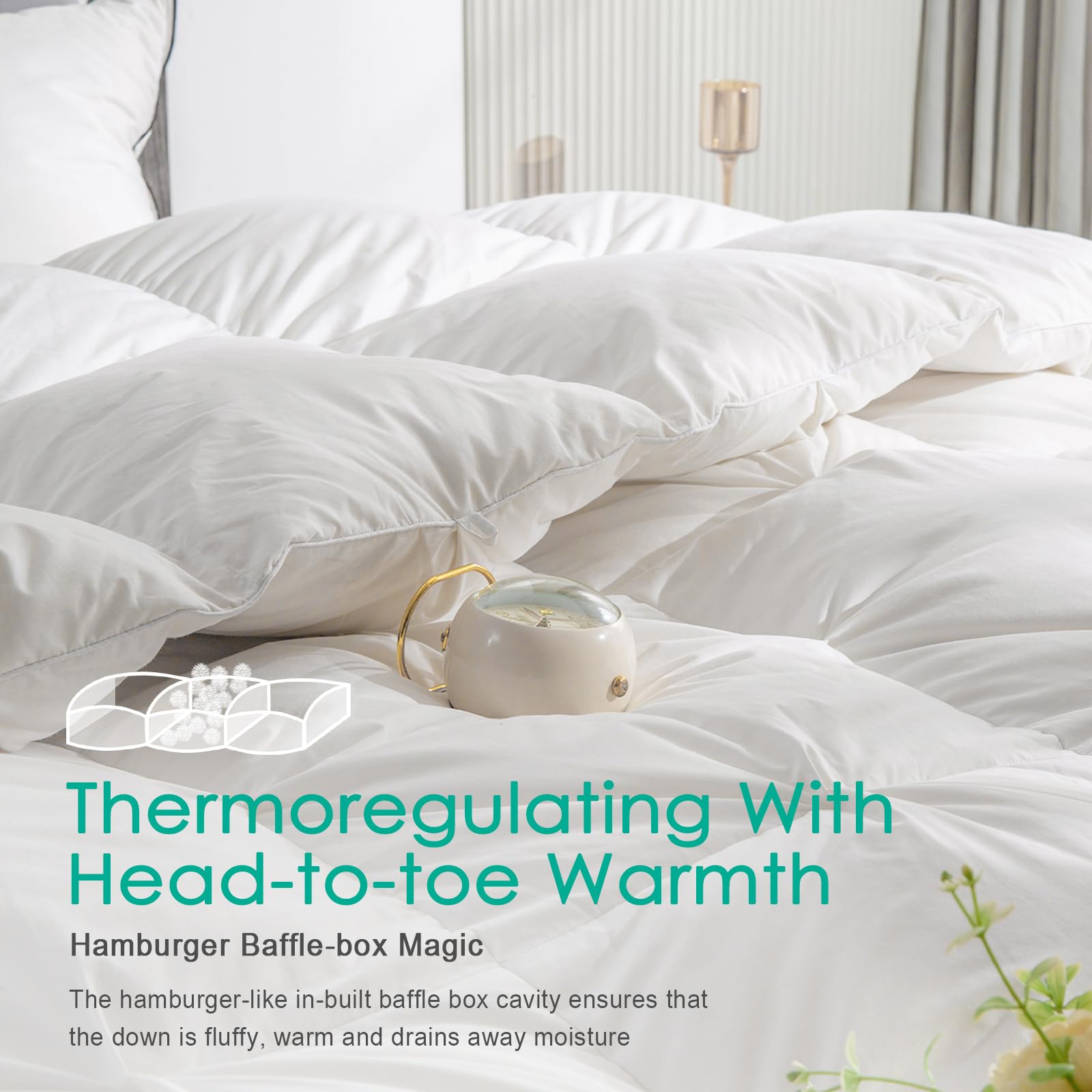 - FLUFFY LIKE A CLOUD - Our luxurious down duvet insert has 750 high Fill-Power, is filled with highly fluffy feather down, Incomparable softness and bulkiness like a cloud. Our down duvet is ethically sourced and RDS, OEKO-Tex Standard 100 certified.
