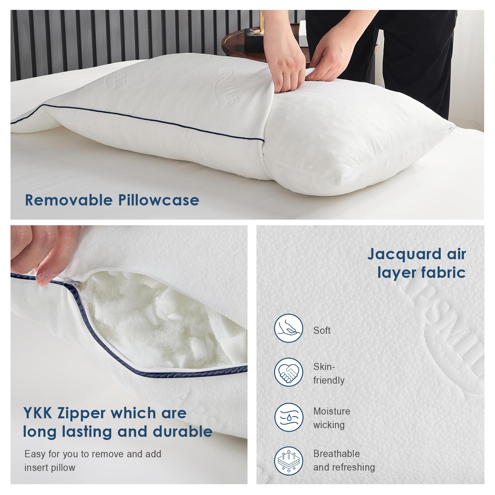 - Easy to Care ForMemory foam has a good rebound performance and will return to fluffing on its own without the need for frequent adjustments during use. It prevents it from clumping or flattening over time, so your pillow stays superbly supportive every night without needing to be fluffed. The zip-off pillowcase is removable and machine washable to keep your pillow fresh night after night
