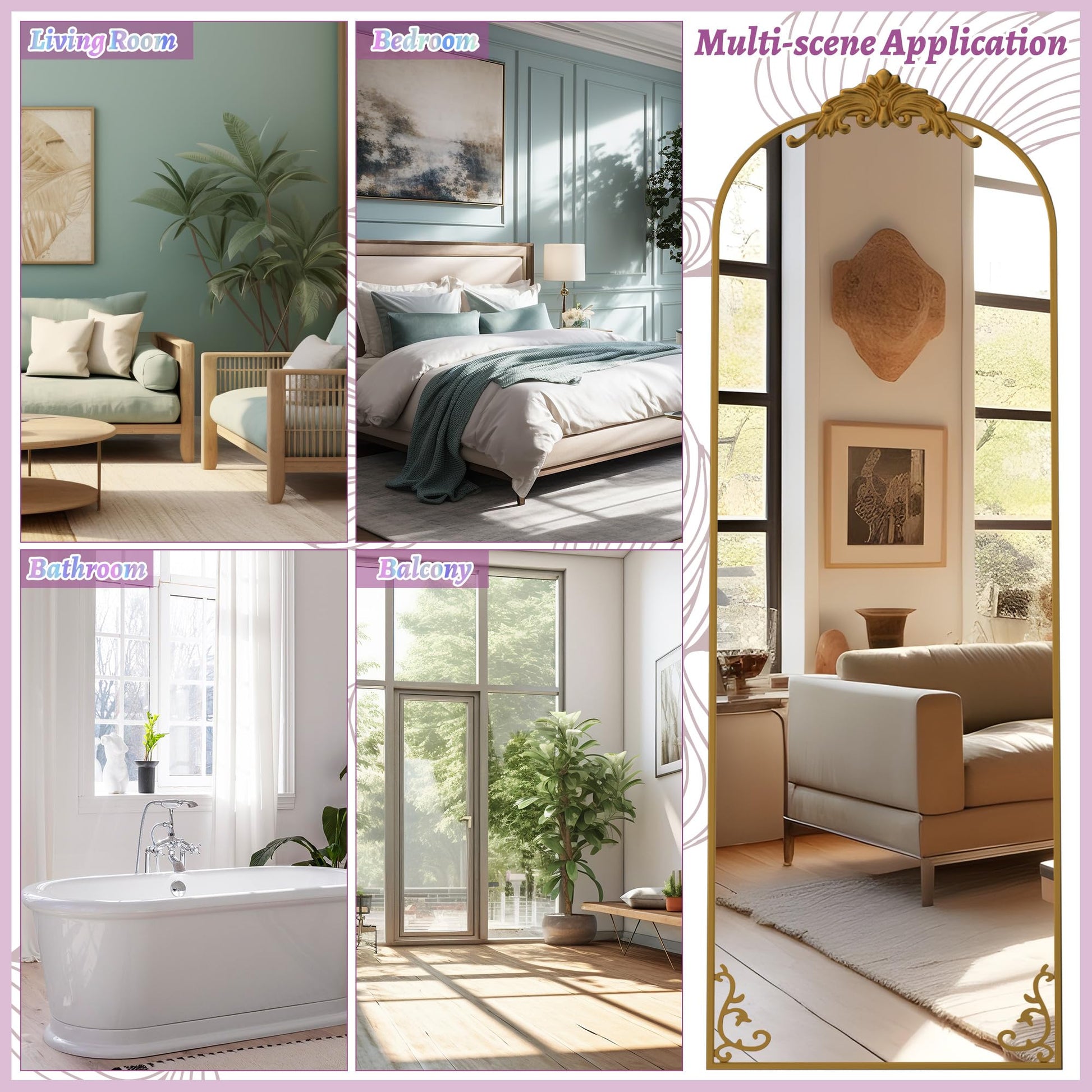 Transform your space with this stunning full-length arched mirror featuring an ornate vintage gold carved frame. Perfect for bedrooms, living rooms, dressing rooms, and entryways, this versatile mirror combines timeless elegance with practical functionality.