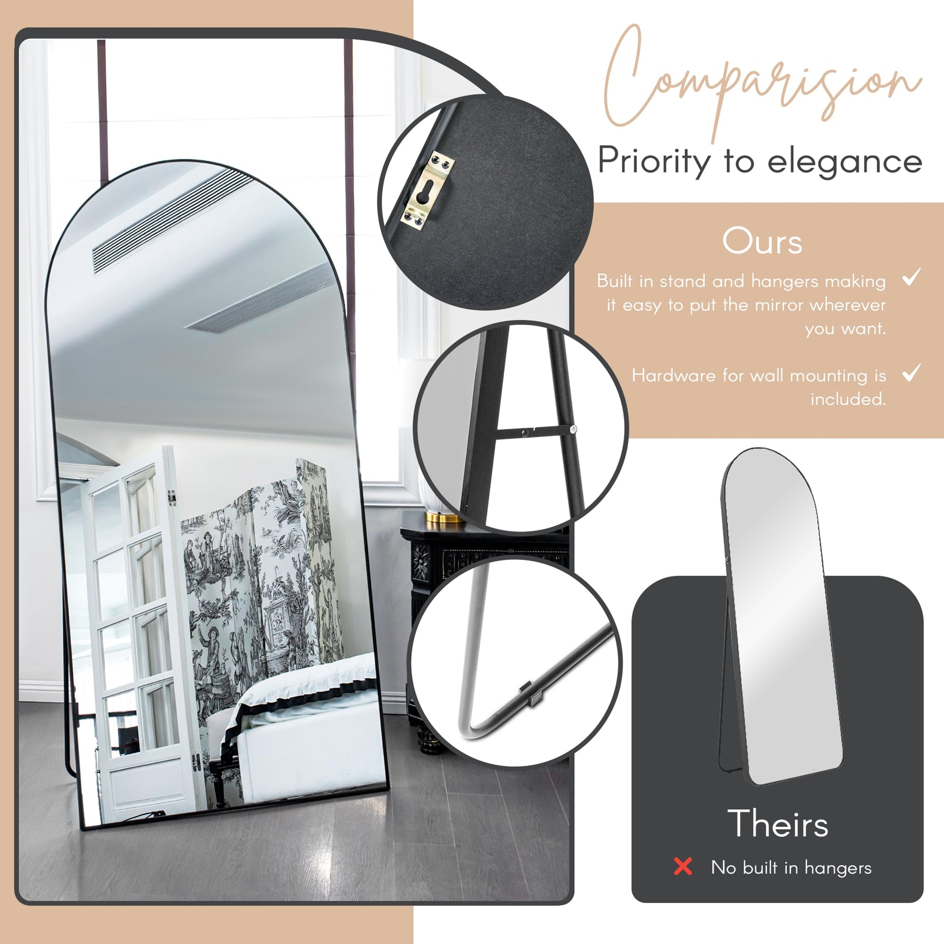 - Versatile installation options: freestanding, leaning, or wall-mounted