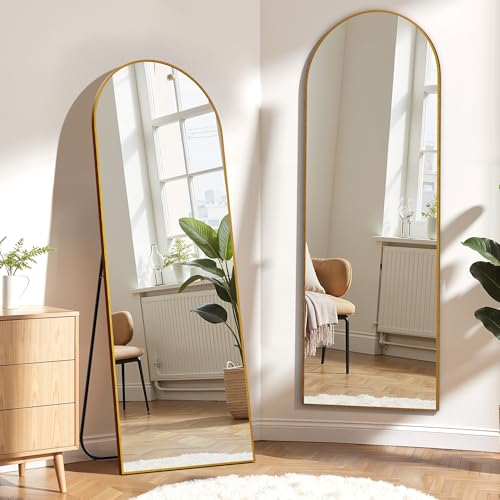 Elevate your space with this premium arched full-length mirror, designed to bring elegance and functionality to any room. Featuring a sleek gold aluminum frame and shatter-proof glass, this mirror combines safety with sophisticated style.