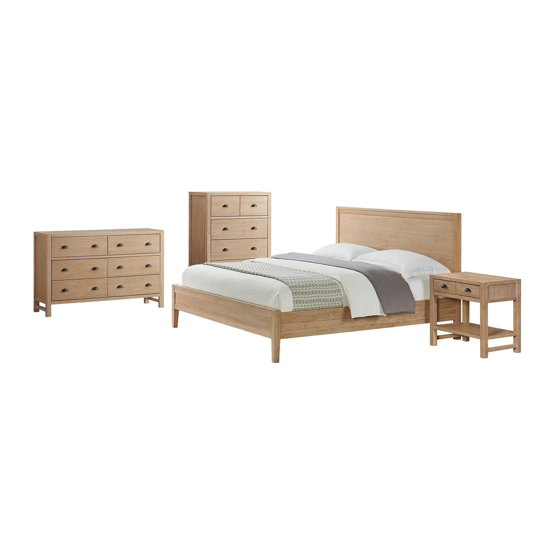 4-Piece King Bedroom Set - Solid Pine Wood, Includes King Bed