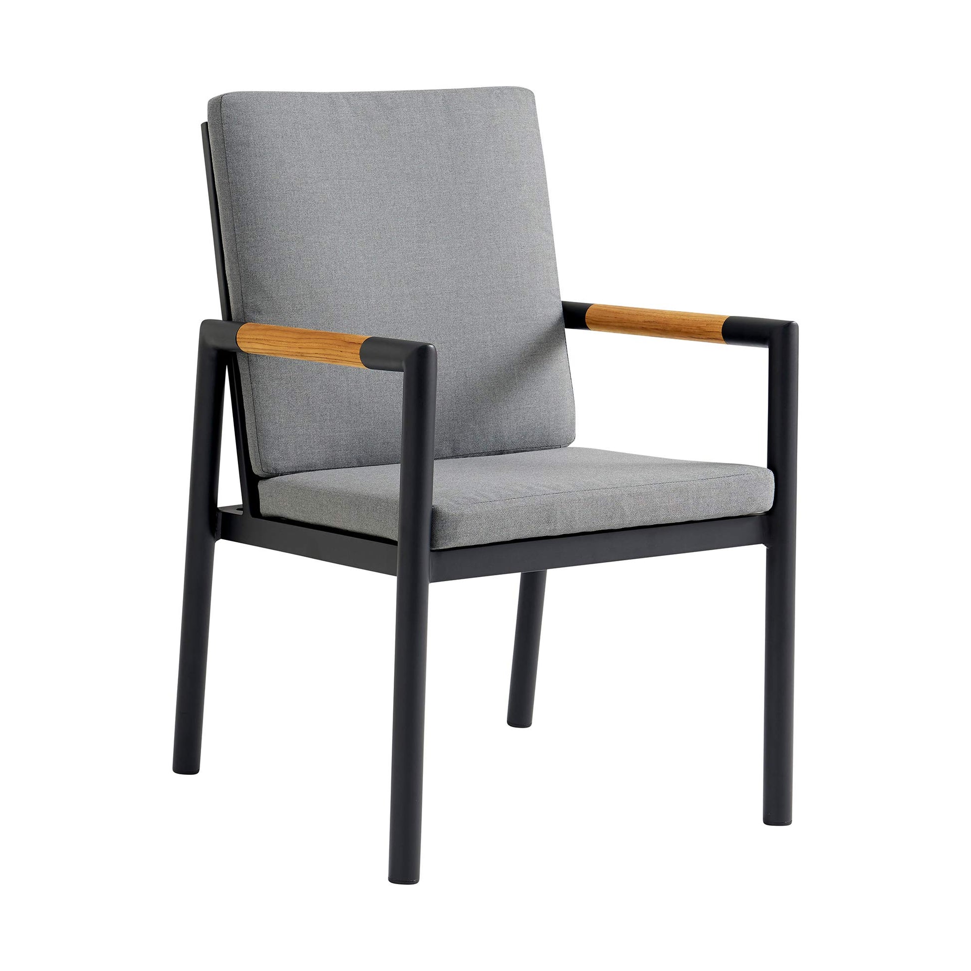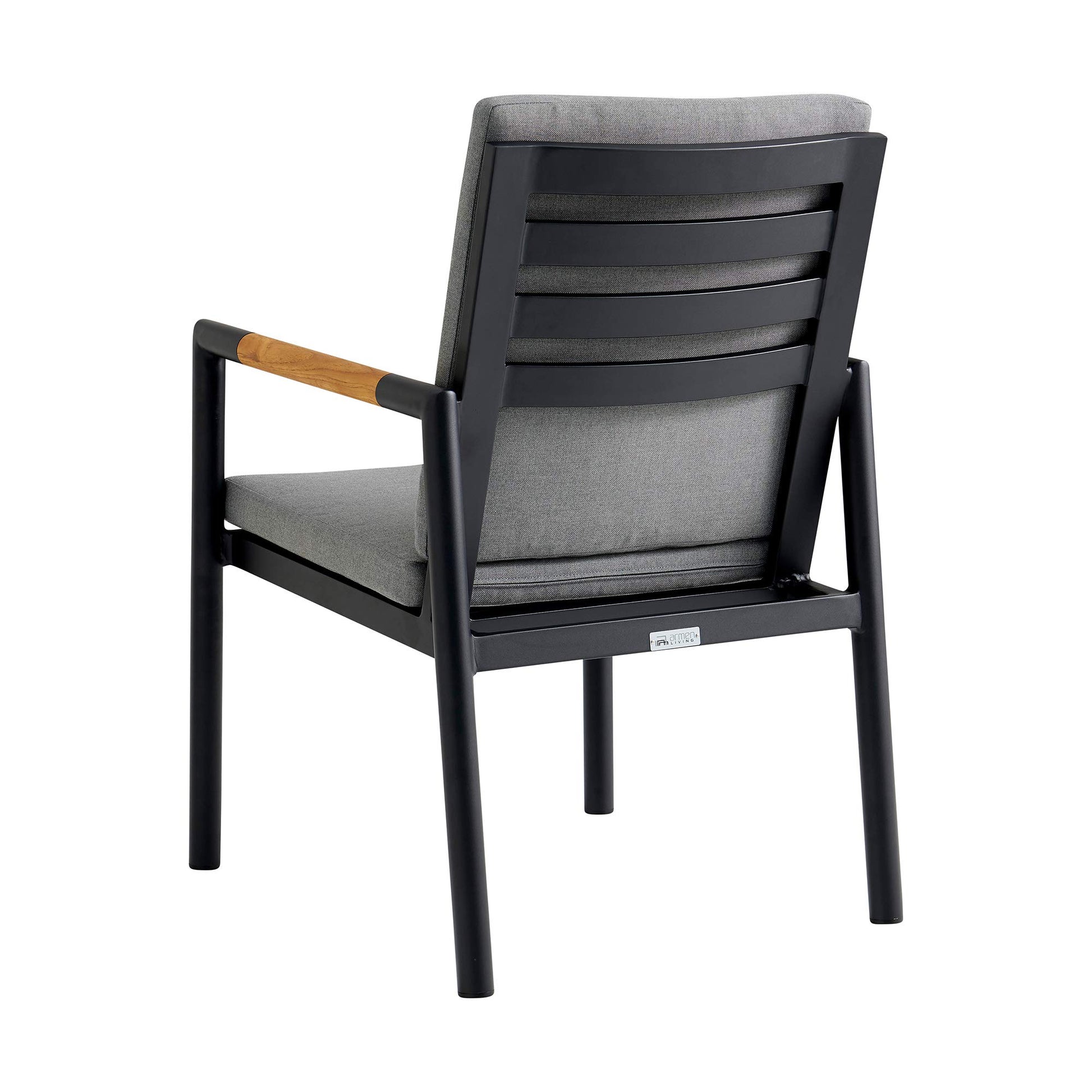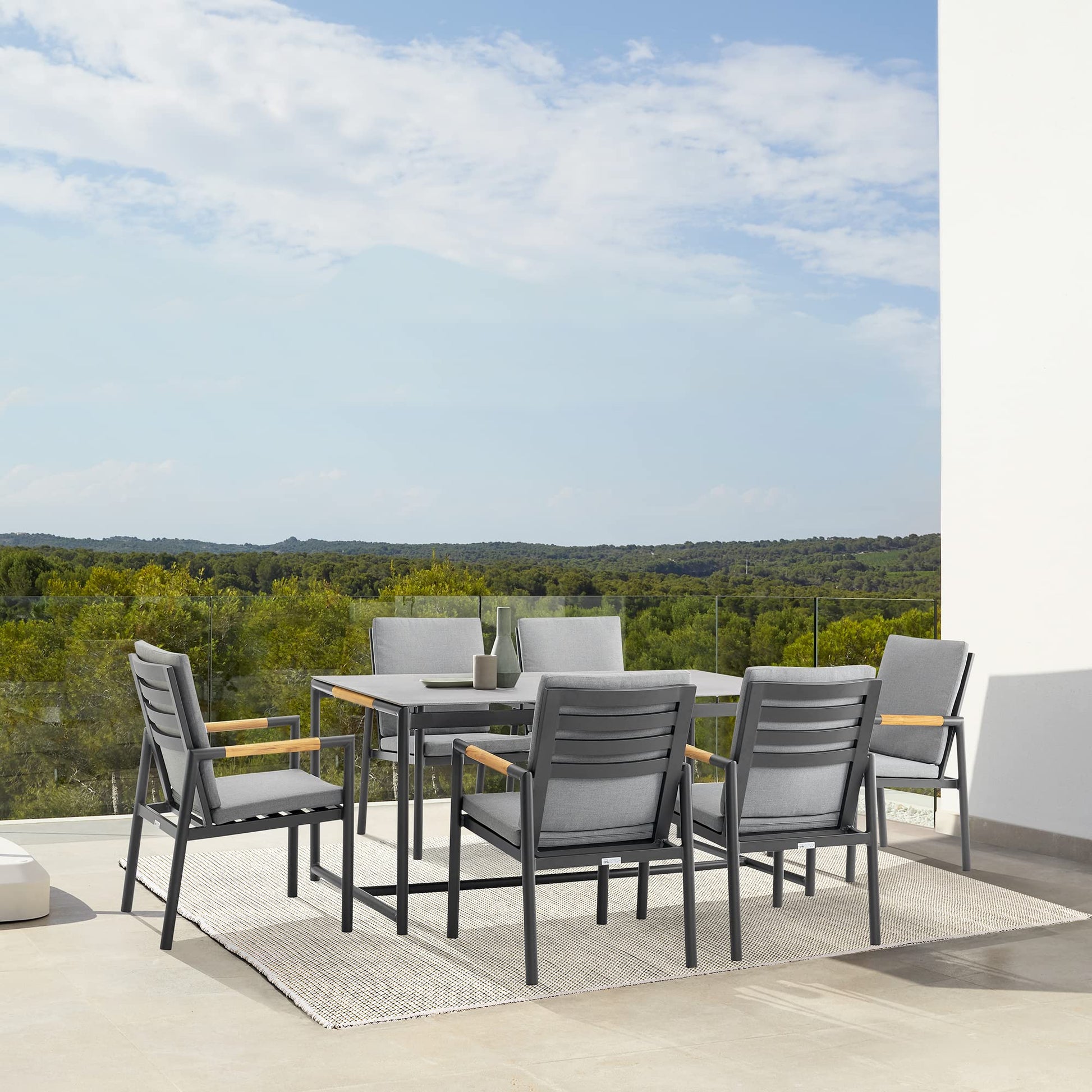 Royal 7 Piece Black Aluminum and Teak Outdoor Dining Set with Dark Gray Fabric