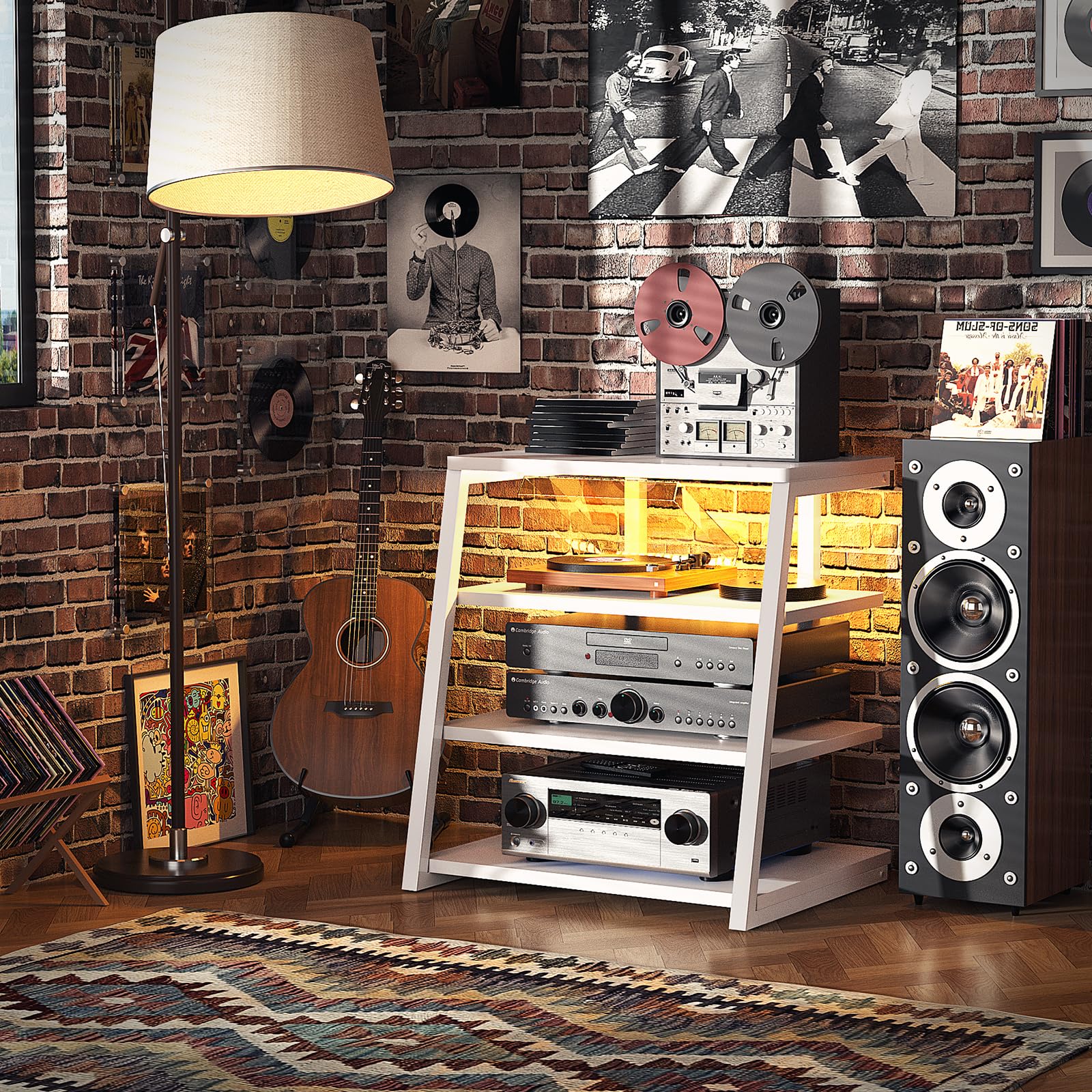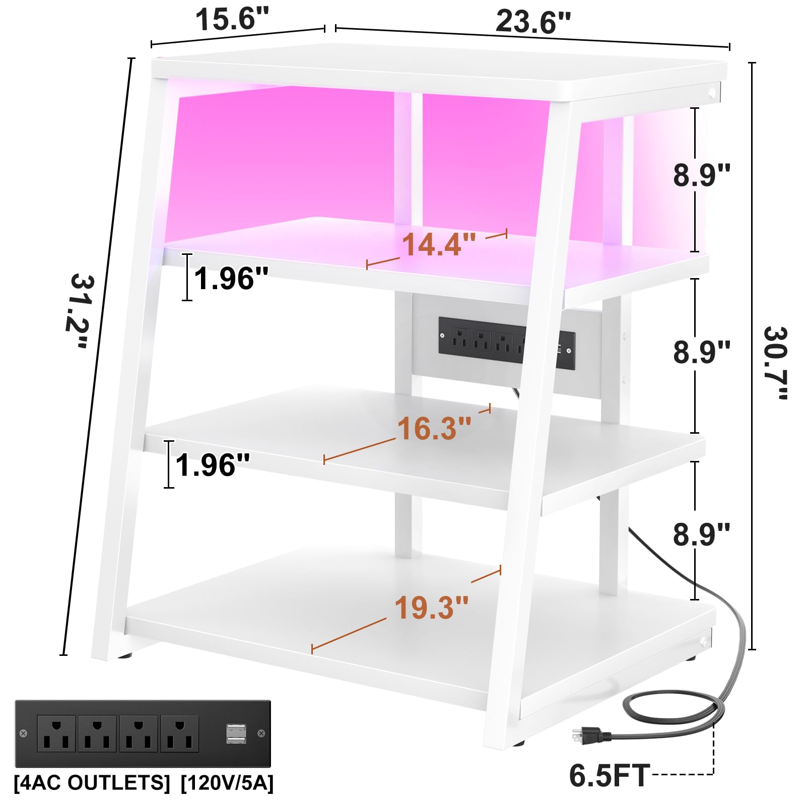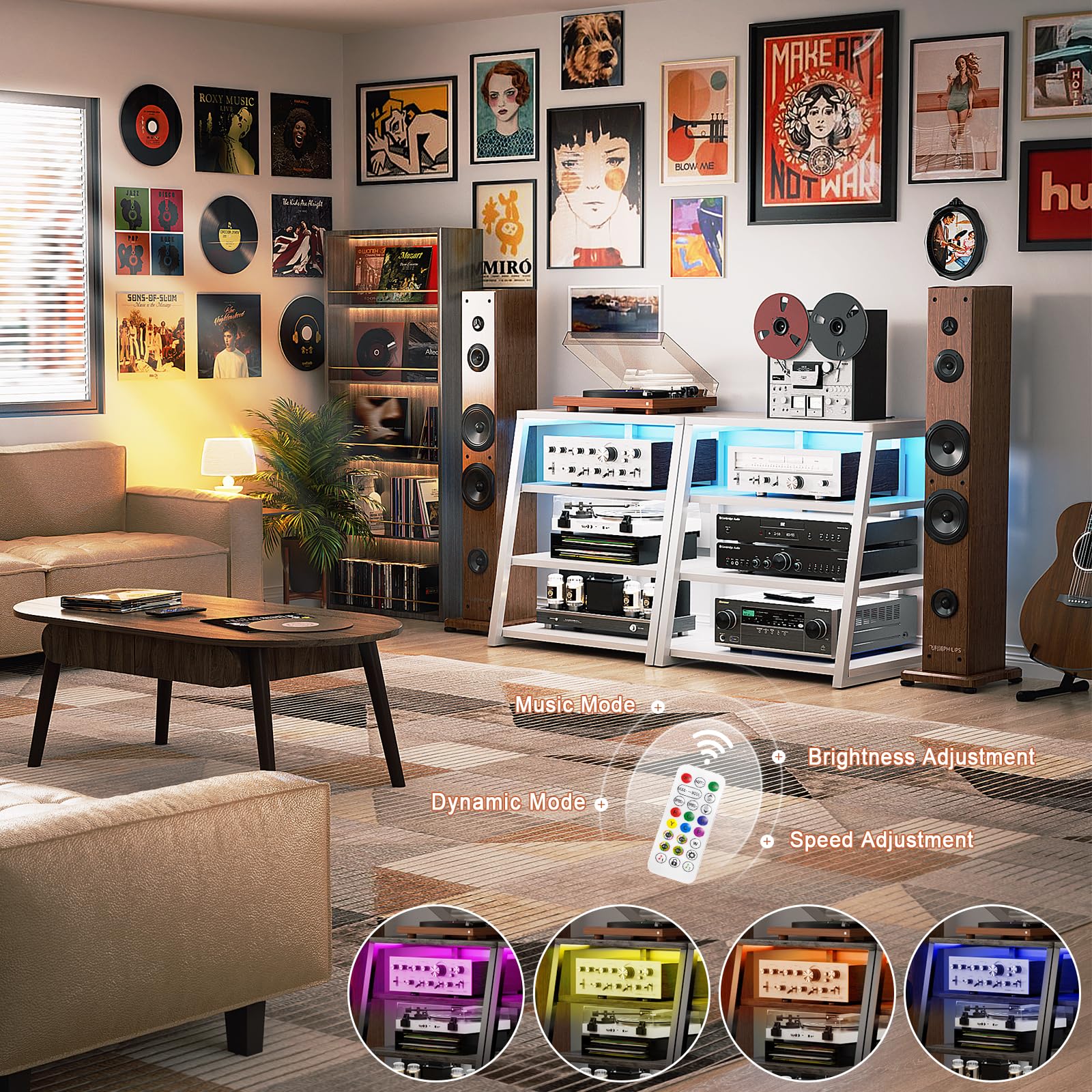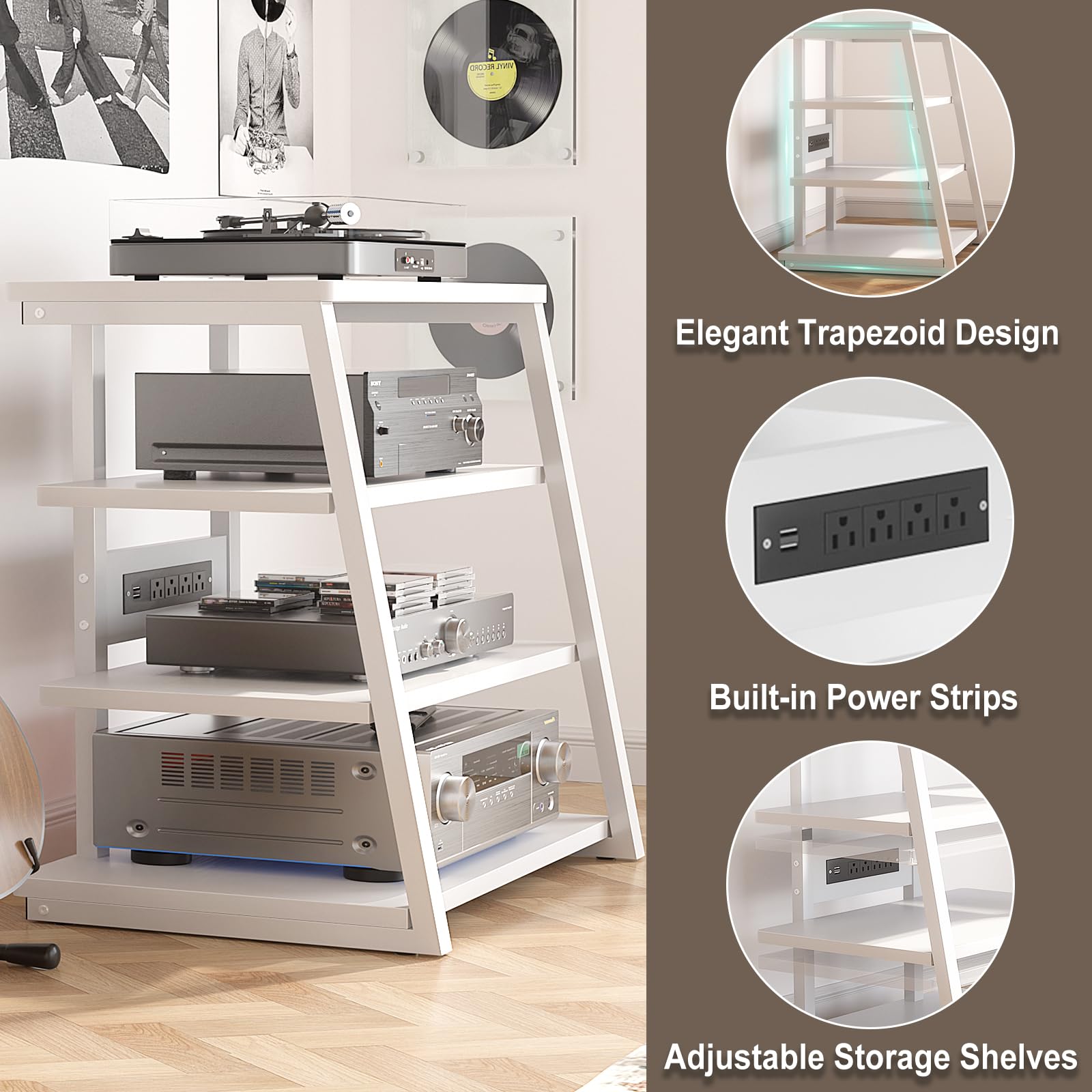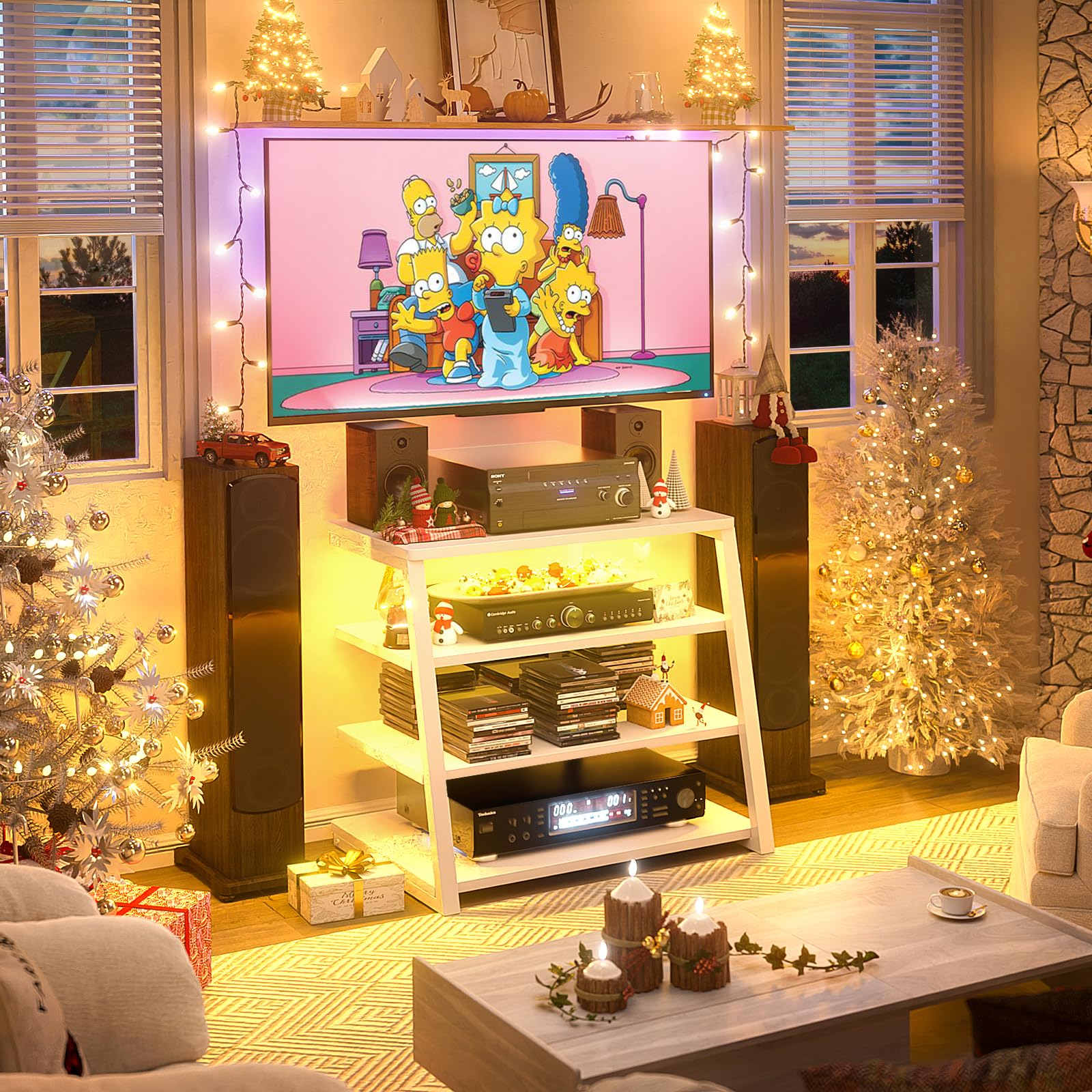 4-Tier AV Media Stand with Power Strips, Corner TV Stand with LED Lights