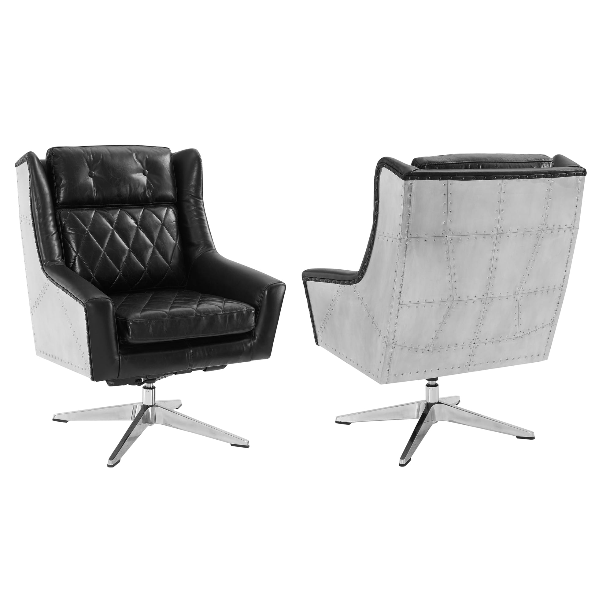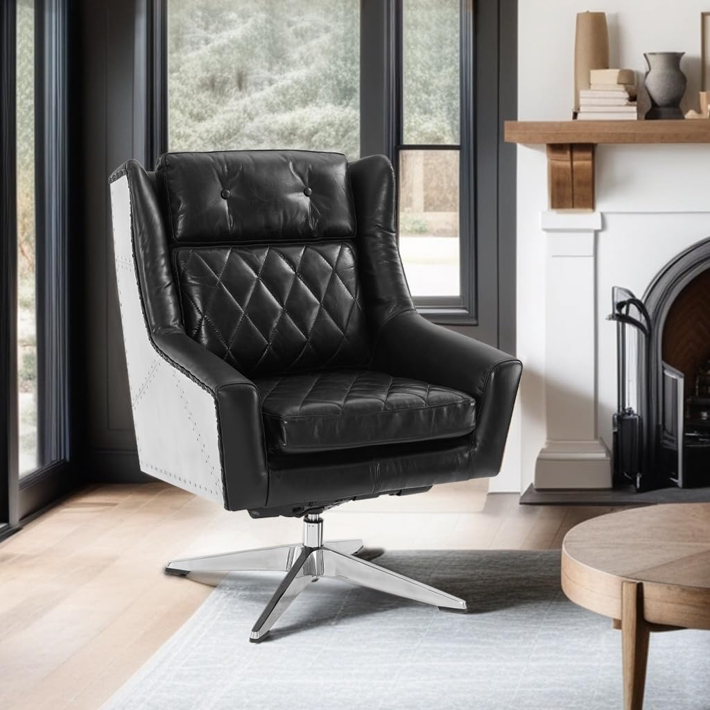 Genuine Leather Accent Chair, Set of 2, Mid Century Modern Swivel Armchair, Club Chair