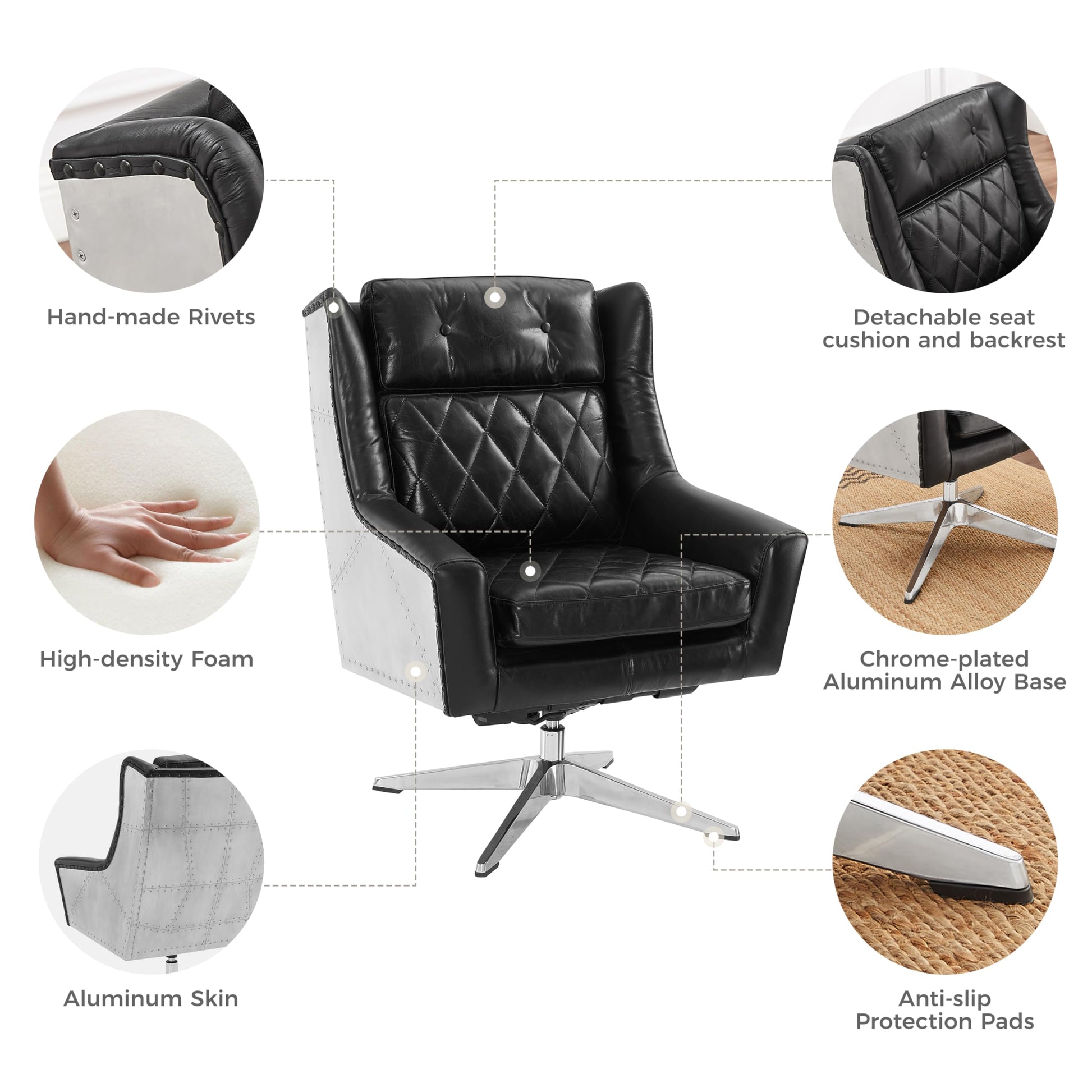 - Made of a solid wood frame and polished chrome-plated aluminum base that has excellent strength and stability, this club chair will offer you strong support.