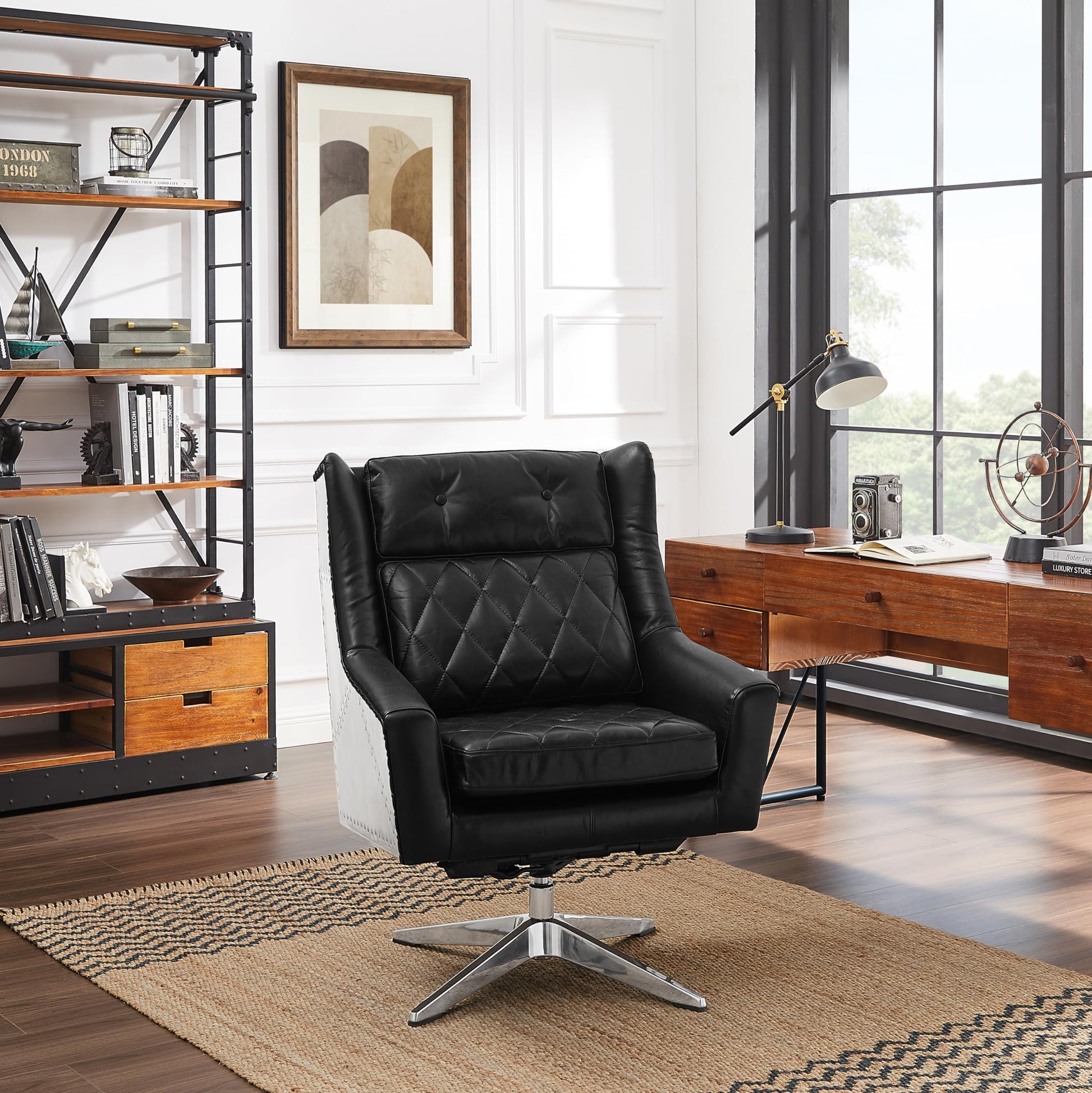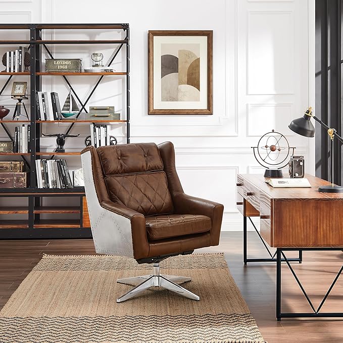 - Features retro genuine leather upholstered and aluminum skin with hand-made rivets on both sides and back, creating a perfect blend of modern and classic. It is a luxury decoration for your living room, bedroom, or office.
