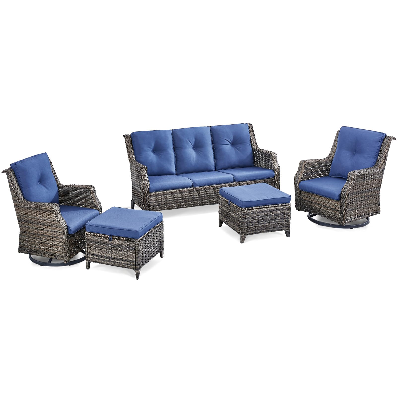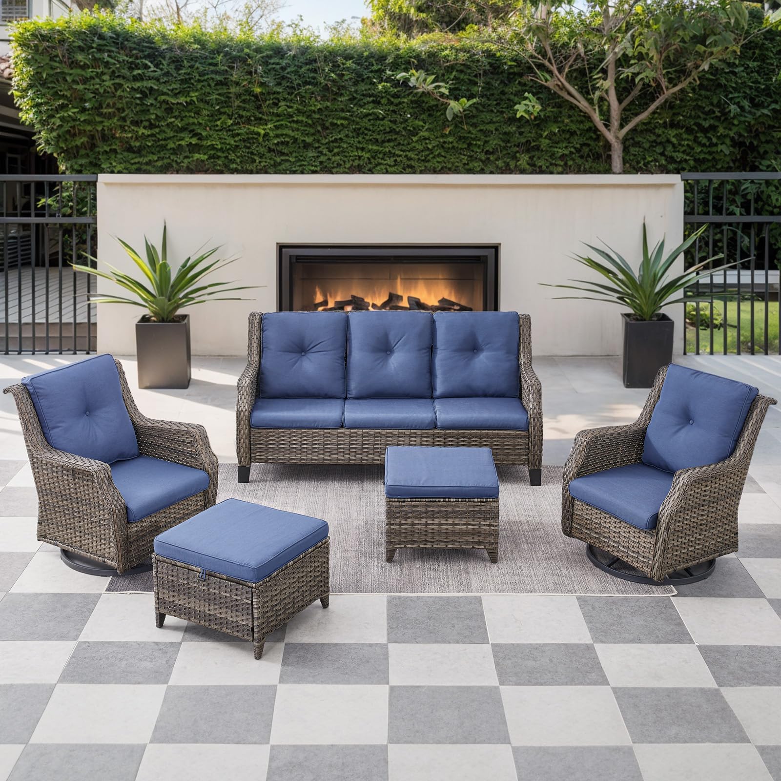 - 6 Pieces Patio Furniture Set - This beautiful set includes two outdoor swivel glide patio chairs,a 3 seat sofa chair and 2 ottomans. Not only does it provide comfortable seating, but it also serves as an attractive outdoor decor piece. Perfect for decks, porches, backyards, and balconies, both style and functionality to any outdoor space