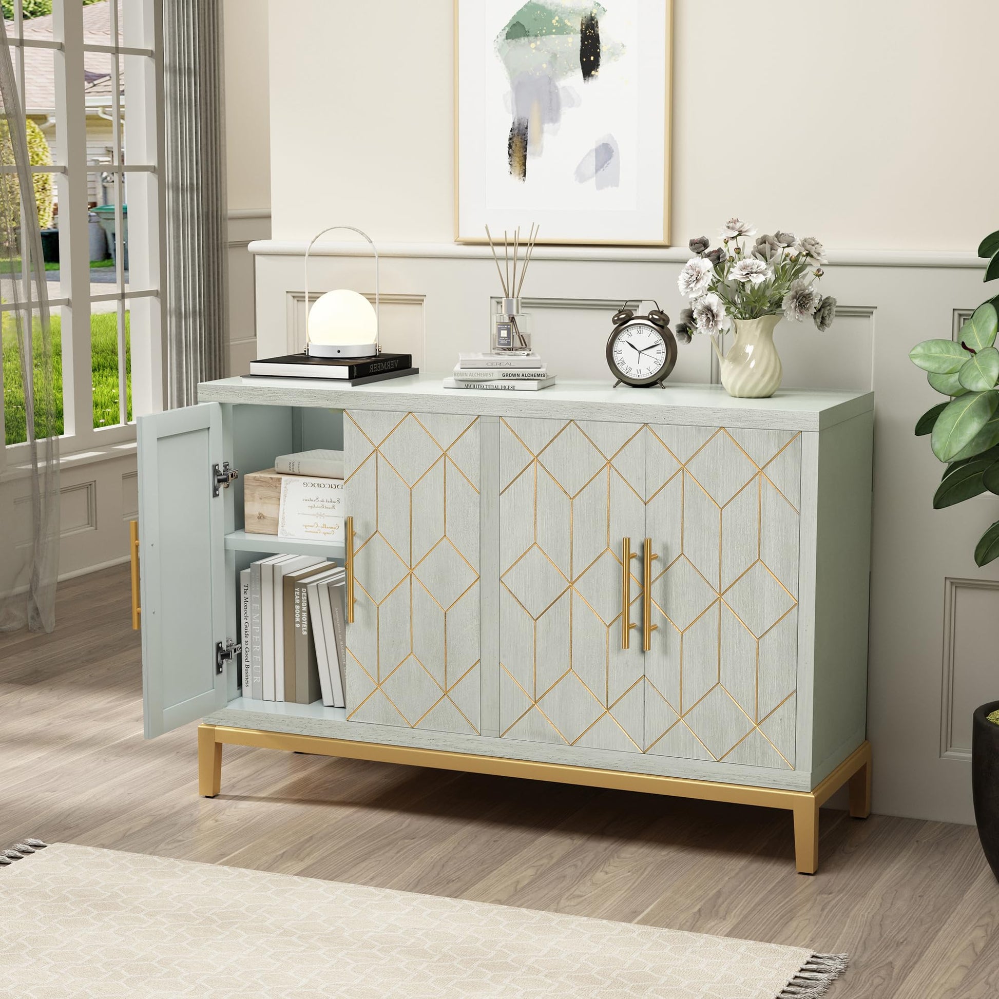 Accent Cabinet with 4 Doors, Modern Credenza Storage Cabinet