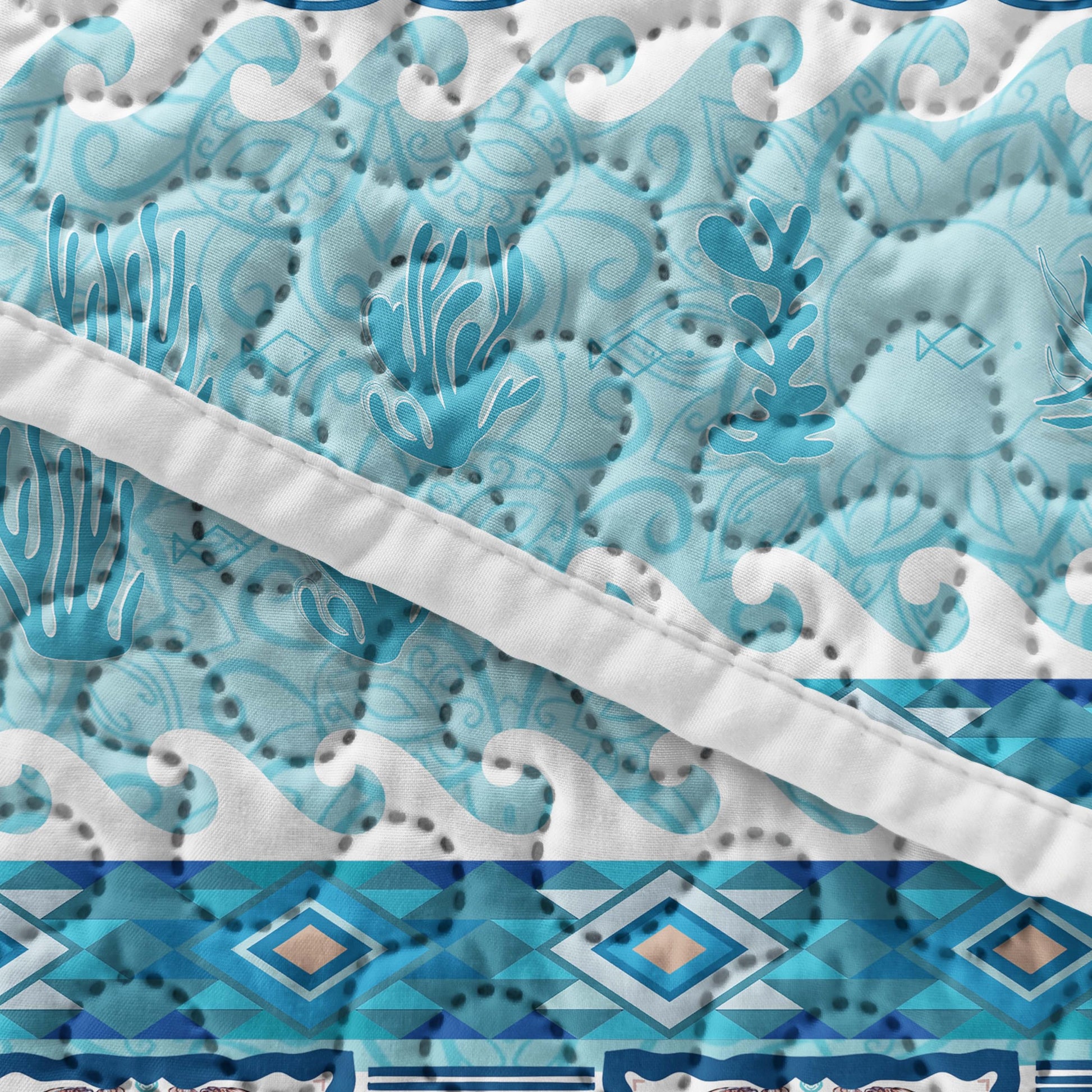 - The blue coastal ocean quilt is made from 100% microfibre as the surface fabric and 100% cotton as the filling, which gives the quilt long-lasting softness and great breathability. In addition, super soft, lightweight, breathable, and great for all seasons, you will fall asleep every full night And wake up in the morning feeling refreshed.