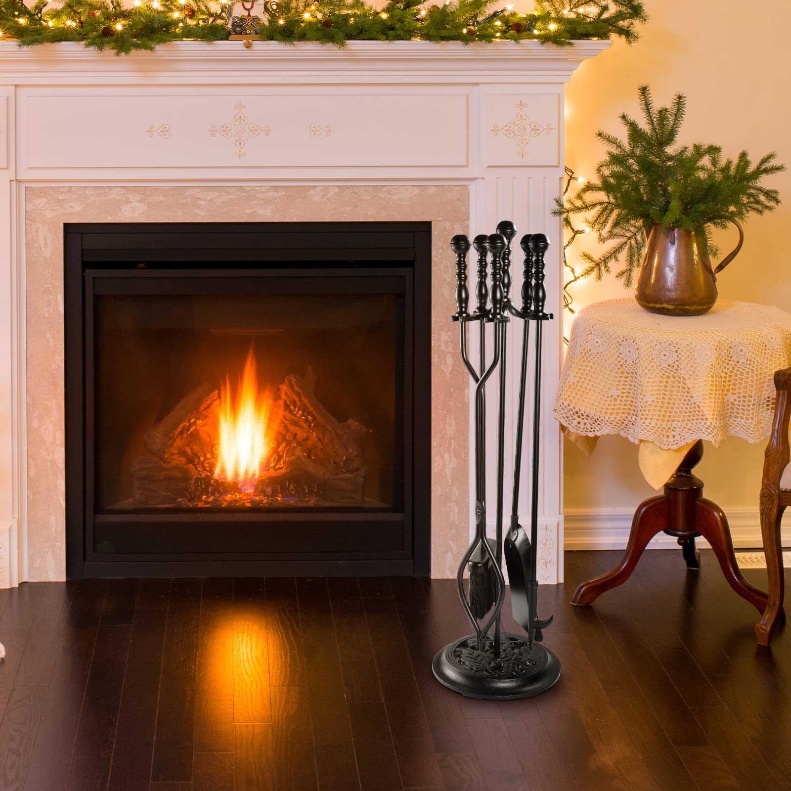 - Assemble quickly: The 5 pieces fireplace tool set is easy to install. Aligning the joint and rotating until tight, and a premium fireplace kit were standing beside the fireplace. It's a quickly business, enjoy your product.