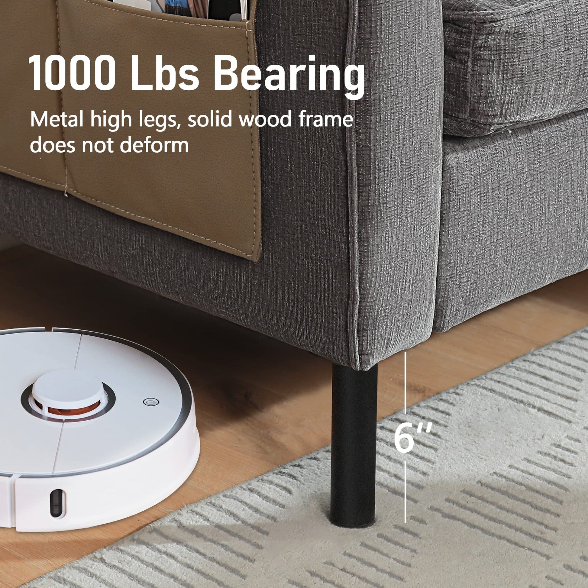 - STURDY ADULT SIZE sofa: Compared to other cheap sofas, ATMUTE l-shaped sectional sofa features a solid wood frame with iron pipe construction, S spring, strong metal legs that is support up to 1000lbs, maximum of 4 people. Definitely do not worry about the stability of the couches for the living room