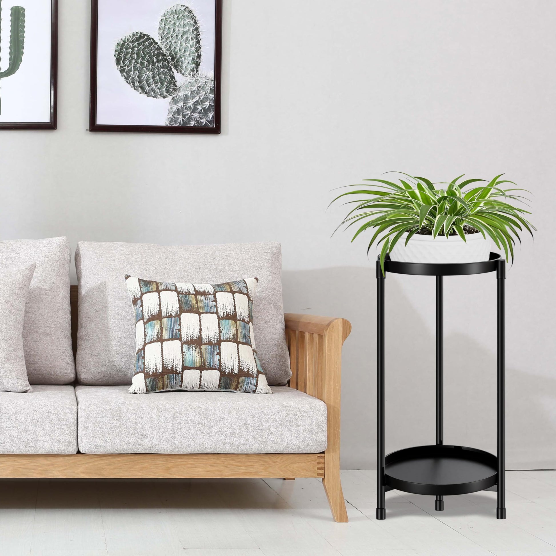 - Sturdy and Durable: Made of high-quality metal, this outdoor 2 tier plant stand is sturdy and durable, providing a stable and reliable support for your plants, suitable for both indoor and outdoor use.