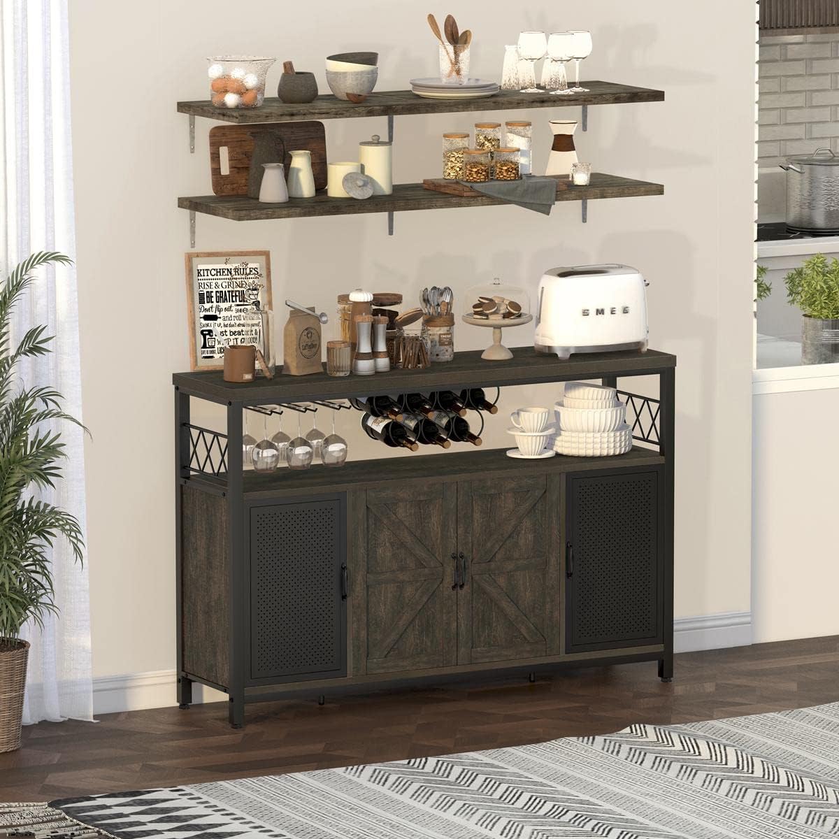 Industrial Wine Bar Cabinet for Liquor and Glasses, Sideboard and Buffet