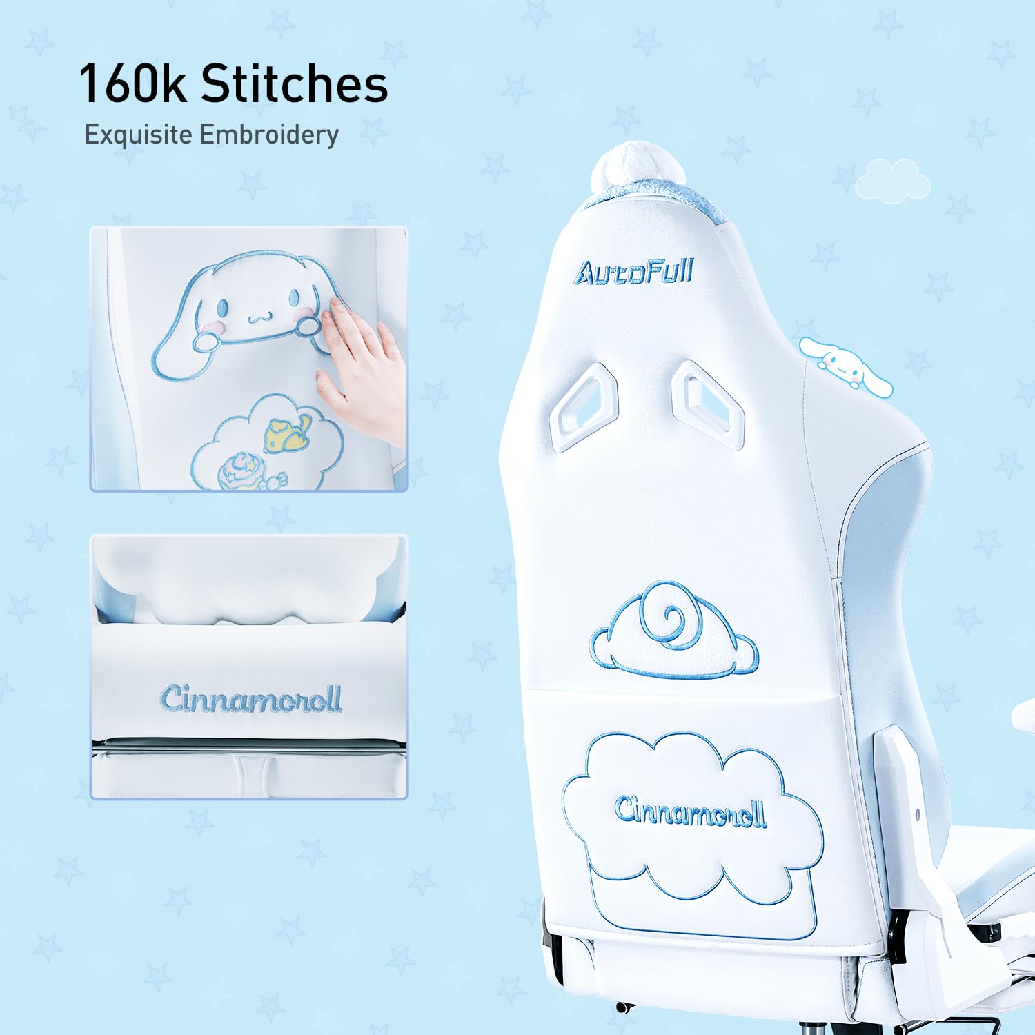 - ERGONOMICALLY DESIGNED: 145° fully adjustable recline, 8cm height, Cinnamoroll gaming chair supports a healthy sitting position so you can game comfortably for hours Retractable footrest, all for finding your most comfortable position.