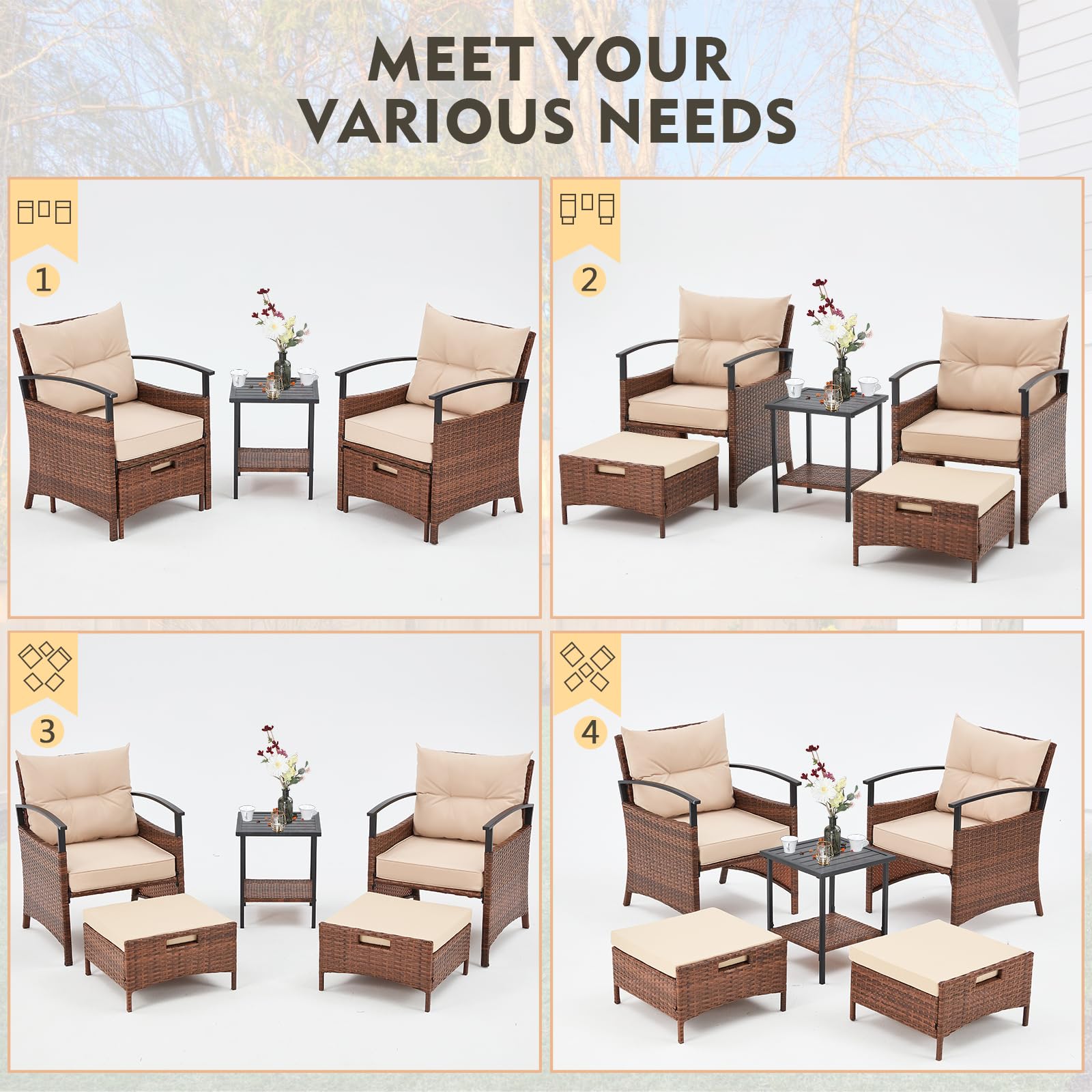 - Upgrade Comfort: This patio furniture set with footrest is equipped with thick cushions, and the seat is designed with soft foam cushions, which can provide higher comfort.
