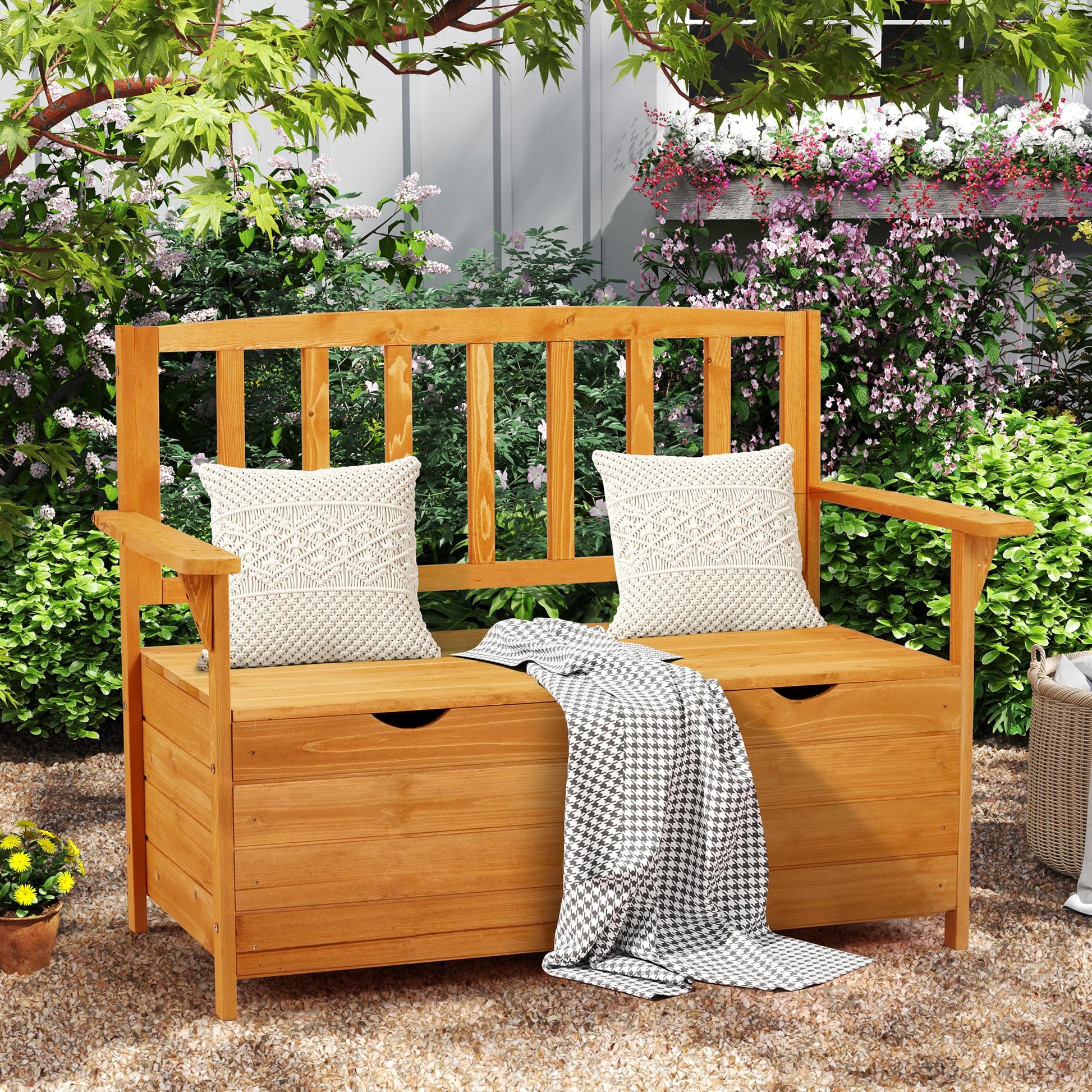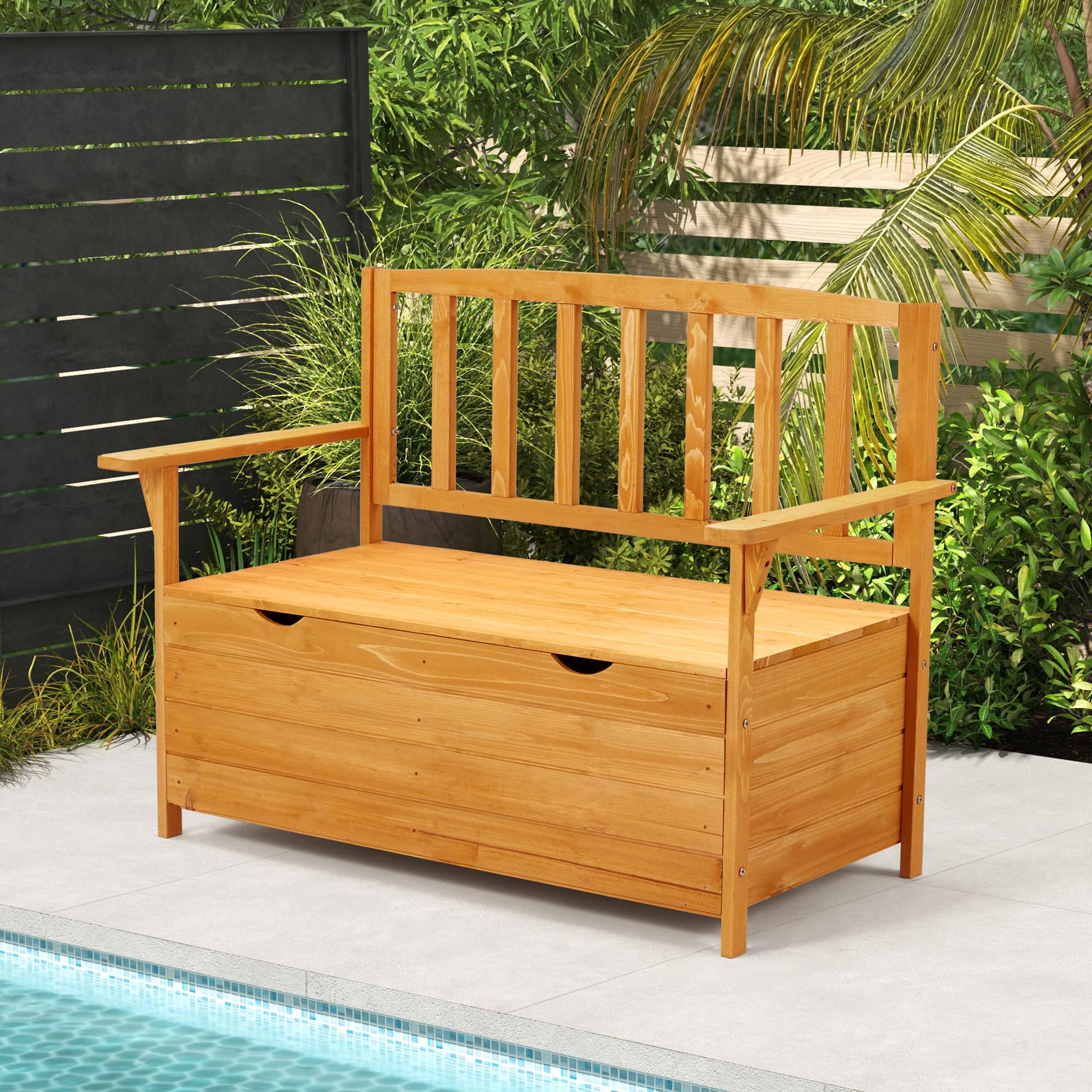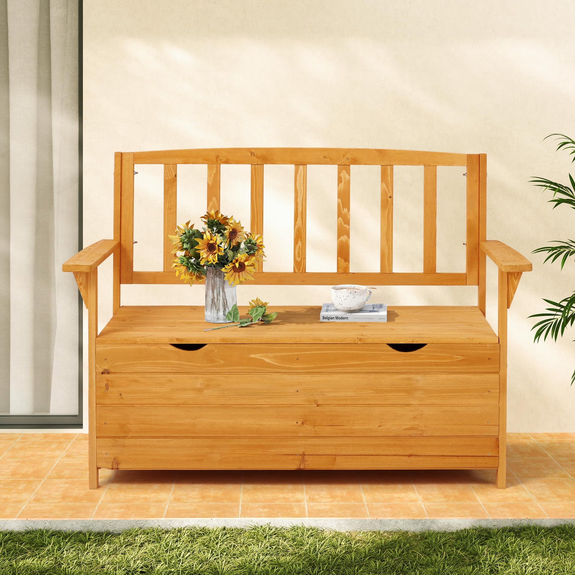 - Sturdy Construction: This outdoor wooden storage bench is crafted from premium solid fir wood with a weather-resistant finish for long term use. The frame of bench is not easy to deform or crack, which has a large capacity of 500 lbs.