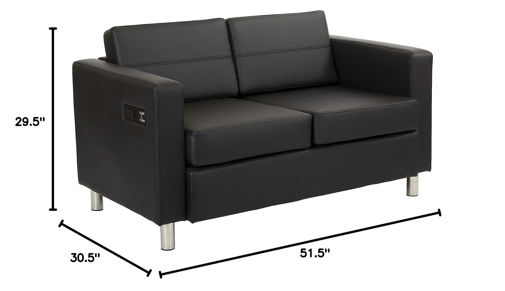 SIX Office Star Atlantic Vinyl Loveseat with Built-in Dual AC and USB Charging