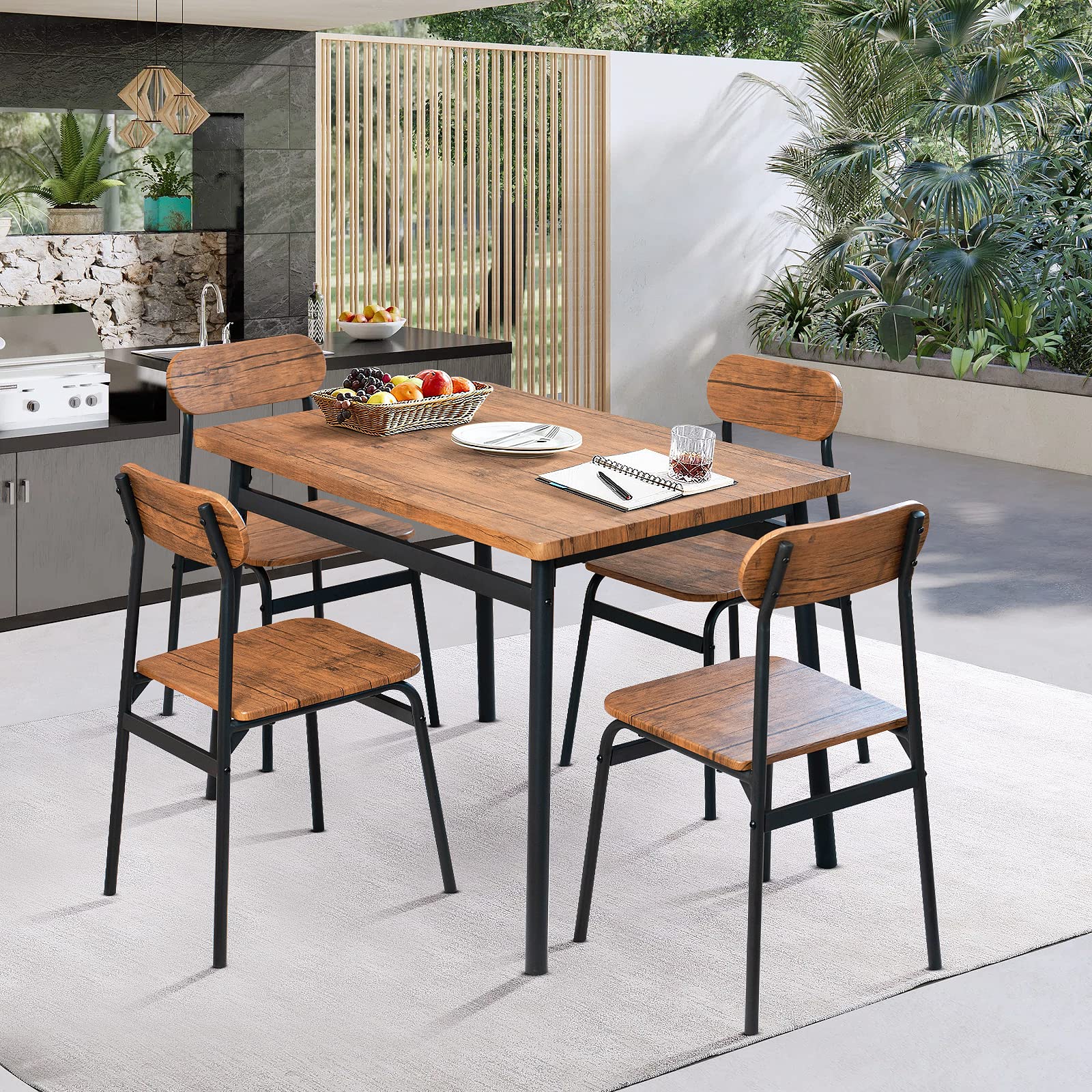- Space Saving Industrial style kitchen tables set includes 1 table and 4 chairs, Chairs can be slided under the table to save space after finishing the meal, creating a tidy atmosphere.